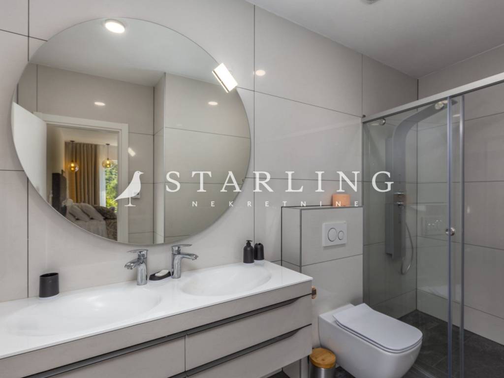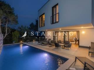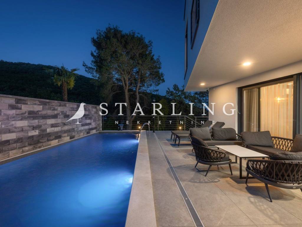 VILLA WITH SWIMMING POOL, SALE, MOŠĆENIČKA DRAGA, 225 m2 Spacious modern villa with pool, with a beautiful view of the sea, only 500 meters from the beautiful beaches of Mošćenička draga. The villa is designed so that every window on the south facade offers a view of Kvarner. Villas like this are a real rarity on the real estate market!!! The villa has three spacious bedrooms, three modern en-suite bathrooms with walk-in showers, a large central open-space area with a modern kitchen, a dining room with a large table, and a large living room with access to the pool. In the basement of the villa there is a wellness area with a jacuzzi and a sauna, as well as an auxiliary kitchen. The outdoor pool of 39 m2 is heated, which extends the season of using the pool. Also, the pool has underwater lighting, hydromassage jets, a waterfall, and a robot for automatic pool cleaning. The landscaped grass area, together with the planted herbs, has fully automatic irrigation. The villa has installed underfloor heating through heat pumps throughout the house. Inverter air conditioners are installed in all rooms for cooling. All installed joinery has triple glazing, with additional sound insulation. The outer insulation is as much as 16 cm!!! The villa is decorated according to the 5-star categorization standard. and is sold fully furnished with modern furniture made to order. All furniture and all materials used during construction were produced in Austria. For maximum security, a modern alarm system with video surveillance has been installed. The entrance door is anti-burglary and fire-resistant. The no-key door opening system enables entry into the house using a special card, without a key. The villa consists of: - GROUNDS: heated swimming pool with hydromassage jets, waterfall and underwater lighting, covered entrance, landscaped grass area with automatic irrigation, paved parking for 2 vehicles. - BASEMENT: wellness area with jacuzzi and sauna, auxiliary kitchen, exit to the garden. - GROUND FLOOR: covered entrance, entrance hall, toilet, kitchen with dining room, living room with access to the pool terrace. - FIRST FLOOR: three bedrooms with private bathrooms. This property is owned by a legal person or company, and the price is 980,000 euros plus VAT of 25%, which makes the VAT amount to 245,000 euros. If you are buying real estate as a legal entity, there is a possibility of submitting a request for a VAT refund. If the property is purchased by a natural person, the total price including VAT is 1,225,000 euros. Parking: two parking spaces within the garden. Orientation: South. Heating/Cooling: underfloor heating throughout the house, inverter air conditioners in all rooms, heated pool. Ownership: 1/1. Price: 980,000 euros.