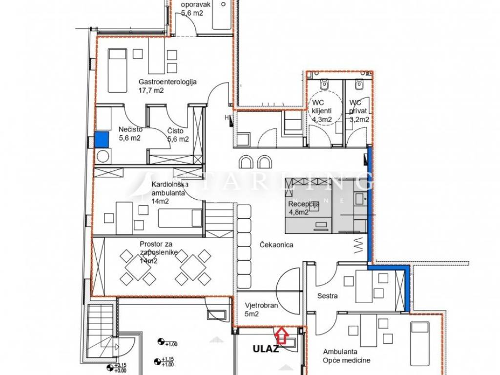 Prostor je trenutačno za adaptaciju te će zakupodavac ovaj prostor urediti sukladno potrebama zakupnika o svom trošku.