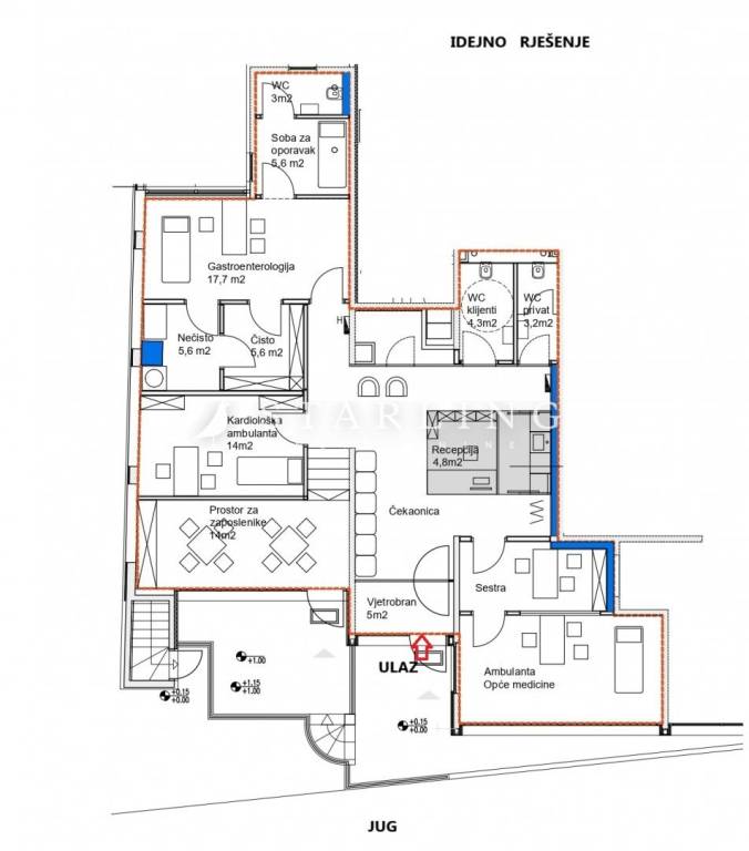 Na tlocrtu koji je idejno rješenje prikazan je mogući raspored.