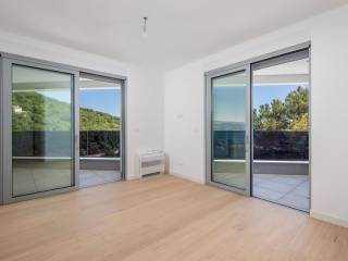 This luxurious property includes 2 living rooms, 2 kitchens, and 2 dining rooms, 4 bedrooms with en suite bathrooms, 2 guest toilets, and 5 balconies with views of one of the most beautiful scenes on the Adriatic, Opatija, and the Kvarner Bay. The apartment also comes with 4 garage spaces and the possibility of using the communal pool of this modern villa. The apartment layout is designed so that the units can be used separately or together, according to the future owner"s preferences. The central part of the apartment consists of living rooms with kitchens and dining rooms, while the bedrooms are located on opposite sides of the apartment. All 5 balconies are located on the south side.