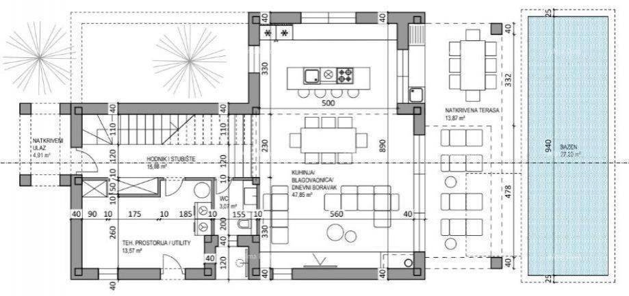 Prodajemo građevinsko zemljište s projektom, građevinskom dozvolom i uplaćenim komunalijama.Zemljište se nalazi na lijepoj lokaciji, okruženo zelenilom, 1,5 km udaljeno od mora.Zemljište ima projekt za katnicu s bazenom, veličine 200m2.Kuća za odmor posjeduje dnevni boravak s kuhinjom i blagavaonom, 3 spavaće sobe, 2 kupaone, toalet, spremište, terasu i sunčalište uz bazen, vanjski tuš i vanjsku kuhinju.Za dodatne informacije, molimo kontaktirajte:Azra+385 91 611 57 06+385 98 420 885azra@almadominvest.com