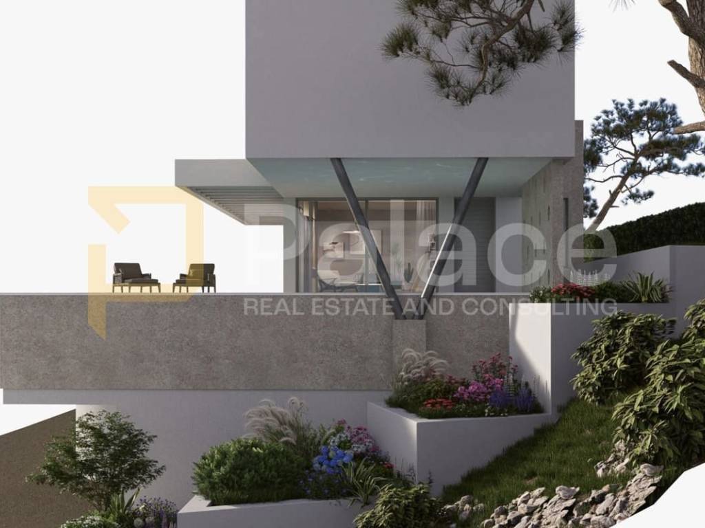 Situated in an elevated position on a 500 m2 plot, it offers a beautiful panoramic view of the sea and islands.
