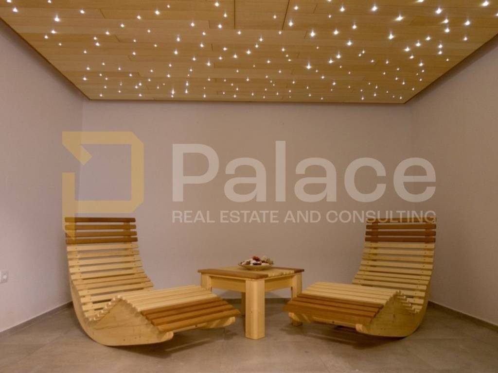 The spacious interior of the villa offers everything you need for a comfortable stay. It consists of four luxuriously appointed bedrooms, each with its own dressing room and private bathroom. The living room, with a beautiful fireplace, creates a pleasant atmosphere for family gatherings, while the kitchen is fully equipped with modern appliances and a space for a family dining area.