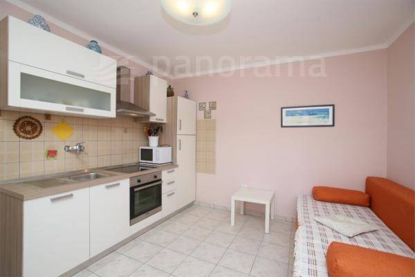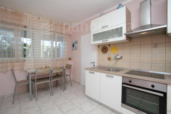 The house is in the center and is only 50 meters from the sea. It has an area of 260 m2 and spreads over three floors. In the basement is a spacious covered terrace (25.60 m2) and open area, apartment, studio apartment, laundry and auxiliary facility (mini kitchen, toilet, shower). On the ground floor there is a two bedroom apartment of 90 m2 which consists of two bedrooms, bathroom, toilet, kitchen, living room and a large covered terrace, and there is another one bedroom apartment. At the top there are two more one-bedroom apartments, each with kitchen and living room and one bedroom, bathroom and terrace. Each apartment offers a beautiful, unobstructed sea view. All apartments are furnished and equipped, each apartment has air conditioning. The garden has an area of 617 m2, is decorated with Mediterranean plants and maintained. There is a parking lot next to the house.