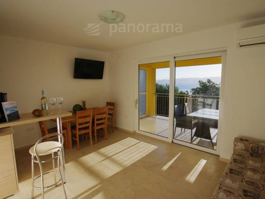 It has a total area of 450 m2, extends over 3 floors and has 6 apartments. The three apartments consist of an equipped kitchen with a dining room and a living room, from which there is access to a spacious balcony with an unforgettable view of the sea and greenery. There are also two bedrooms, two bathrooms and a guest toilet. These larger, two-room apartments can accommodate 4-6 guests.