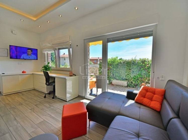 This modern 38 m2 flat consists of a living room with a lounge and kitchen, a bedroom and a bathroom and is only a 10-minute drive from the sea shore and Opatija. It has been recently renovated and is equipped with new furniture and appliances. Its separate entrance and enclosed terrace with plants allow for complete privacy. The parking space is located right next to the flat in a protected area.