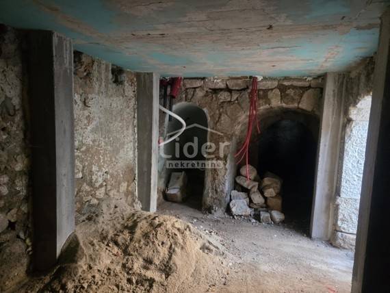 GRIŽANE (CRIKVENICA HINTERLAND) A typical stone terraced house undergoing renovation, featuring a swimming pool, a fully fenced yard, and a terrace with a partial sea view.