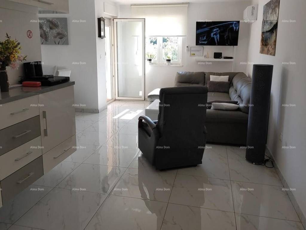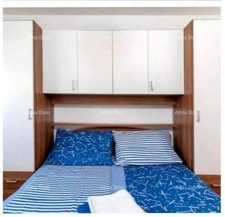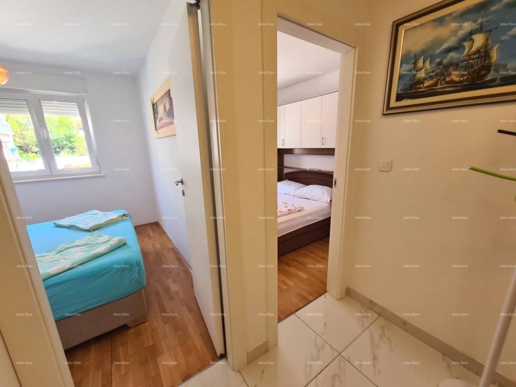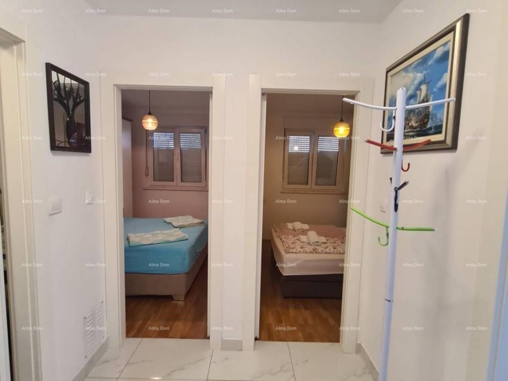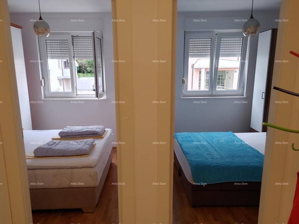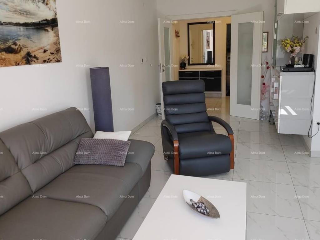 An apartment for sale in an attractive location in Pula, only 120m from the sea. The apartment is located on the first floor and consists of a hallway, bathroom, two bedrooms and a kitchen with dining room and living room. The hallway is spacious and connects the kitchen and dining room, bedrooms and bathroom. Each bedroom consists of a double bed. Next to it is a larger dining table for several people. The living room consists of a large sofa set with an armchair and access to a covered outdoor terrace.The apartment has one parking space in front of the building itself.PVC WINDOWS AND DOORS - AIR CONDITIONING AND FLOOR HEATING (ENTIRE APARTMENT EXCEPT BEDROOMS).Close to school, kindergarten, shops, sports fields, bus stops and other important things.For more information, we are at your disposal:Azra+385 91 611 5706+385 98 420 885azra@almadominvest.com