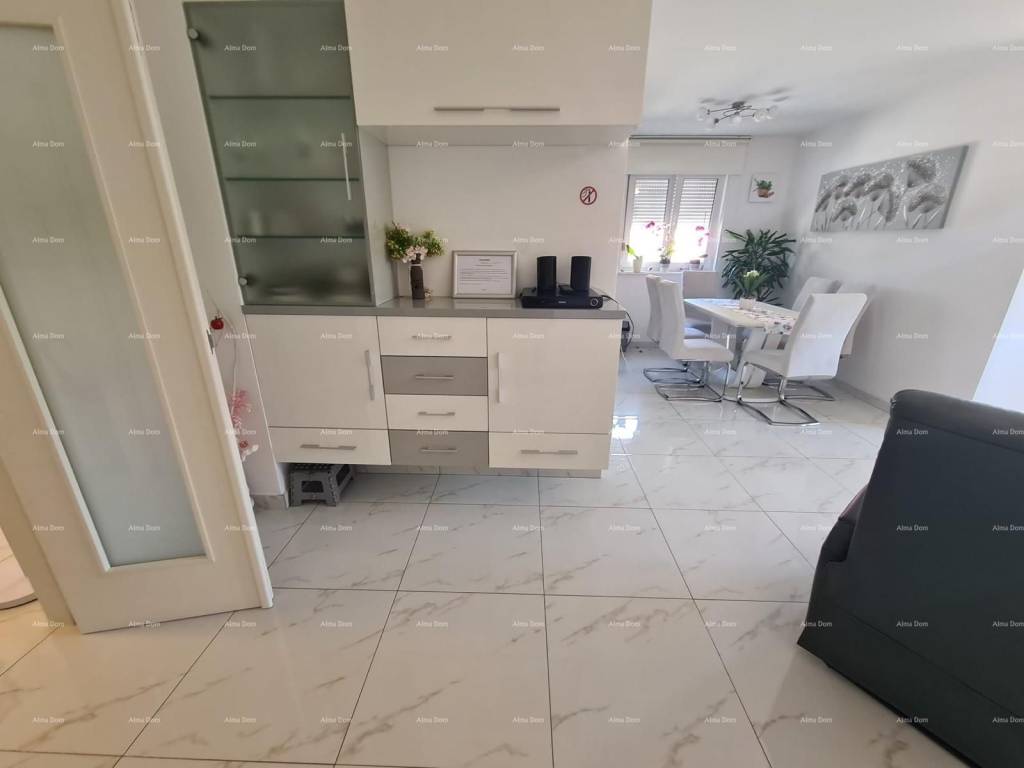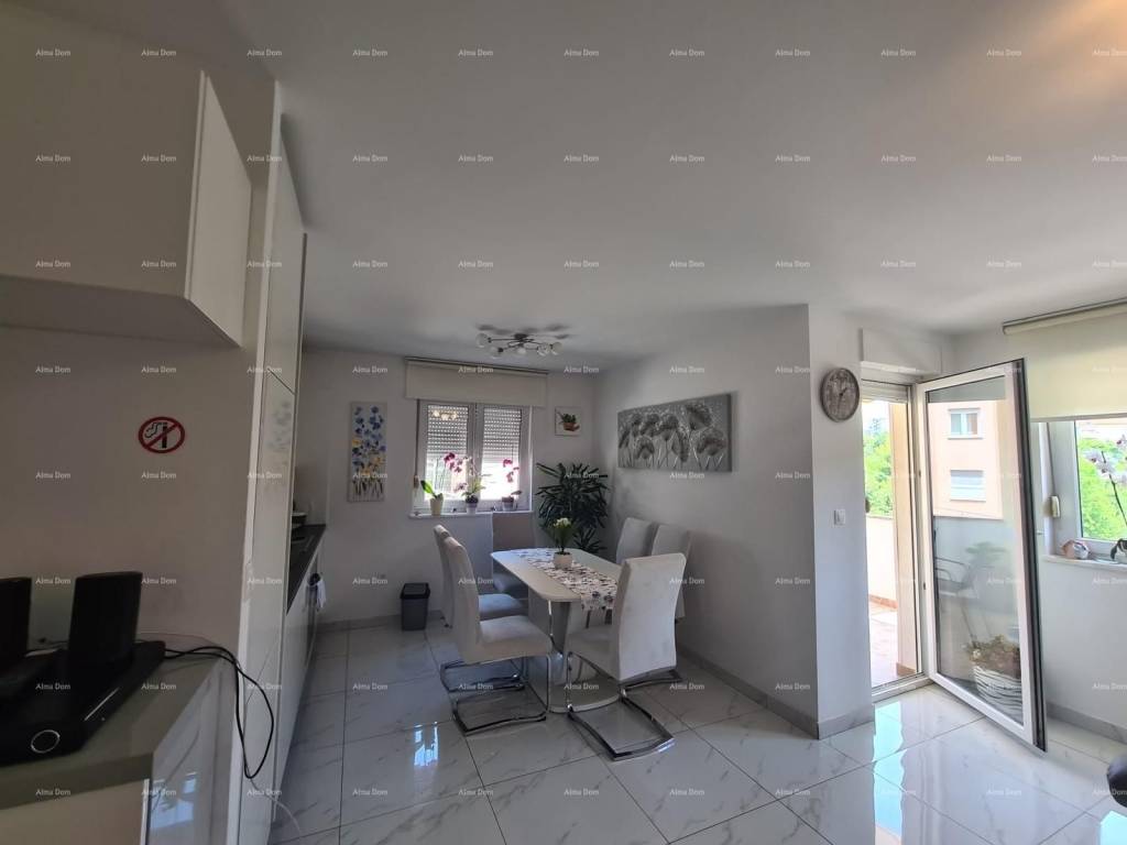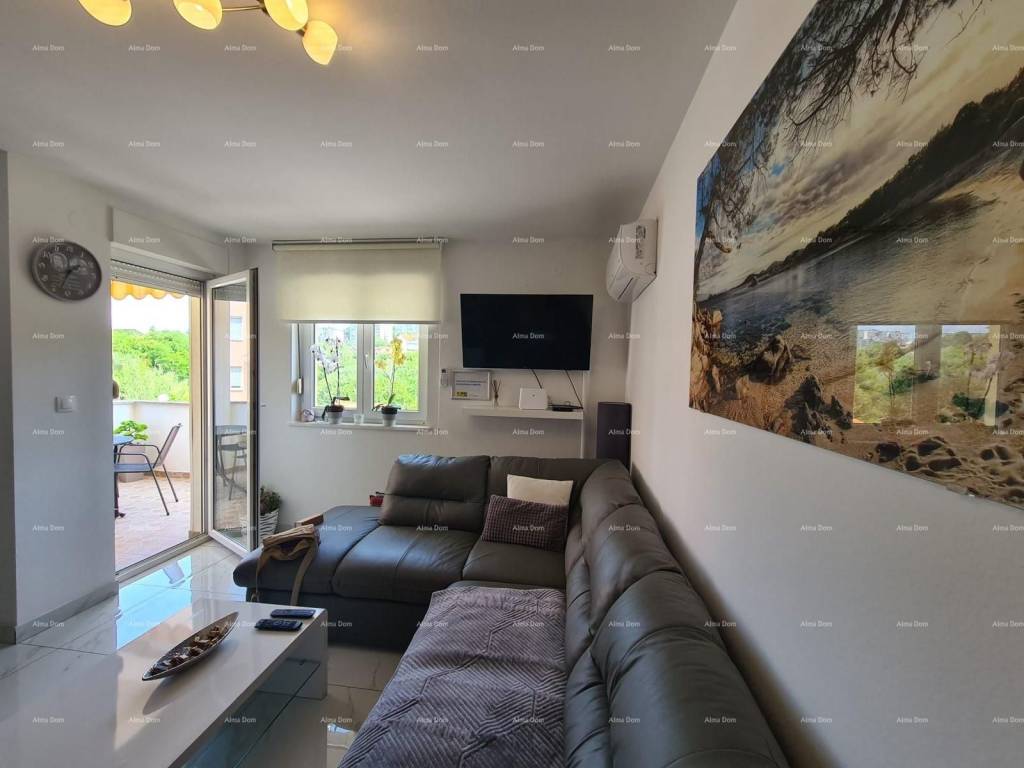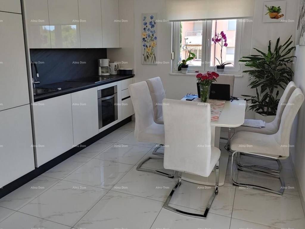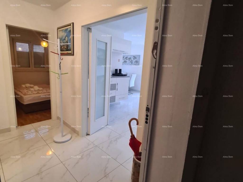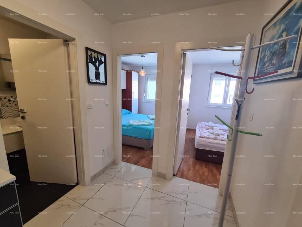 An apartment for sale in an attractive location in Pula, only 120m from the sea. The apartment is located on the first floor and consists of a hallway, bathroom, two bedrooms and a kitchen with dining room and living room. The hallway is spacious and connects the kitchen and dining room, bedrooms and bathroom. Each bedroom consists of a double bed. Next to it is a larger dining table for several people. The living room consists of a large sofa set with an armchair and access to a covered outdoor terrace.The apartment has one parking space in front of the building itself.PVC WINDOWS AND DOORS - AIR CONDITIONING AND FLOOR HEATING (ENTIRE APARTMENT EXCEPT BEDROOMS).Close to school, kindergarten, shops, sports fields, bus stops and other important things.For more information, we are at your disposal:Azra+385 91 611 5706+385 98 420 885azra@almadominvest.com