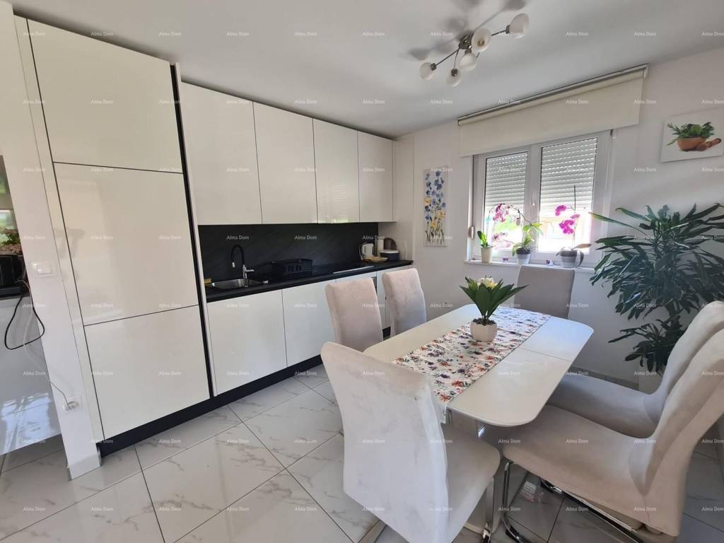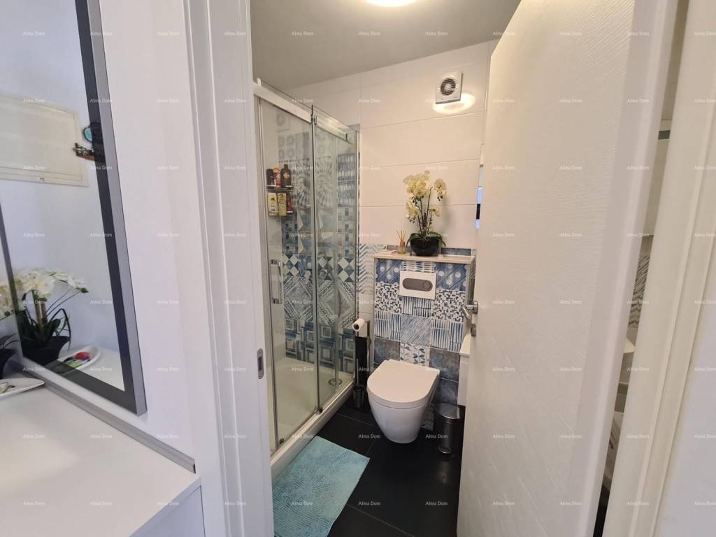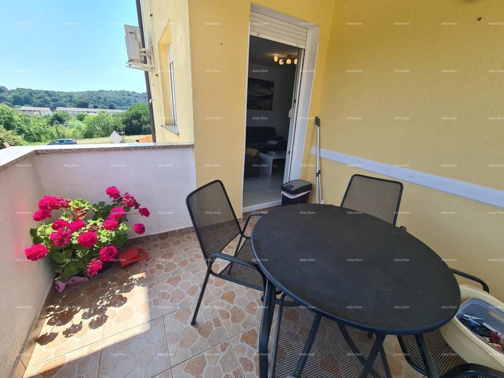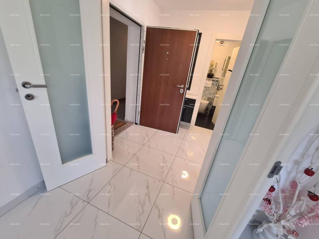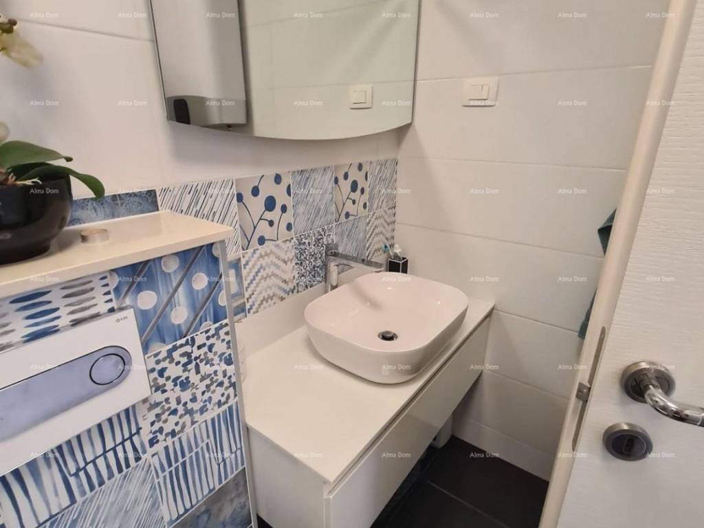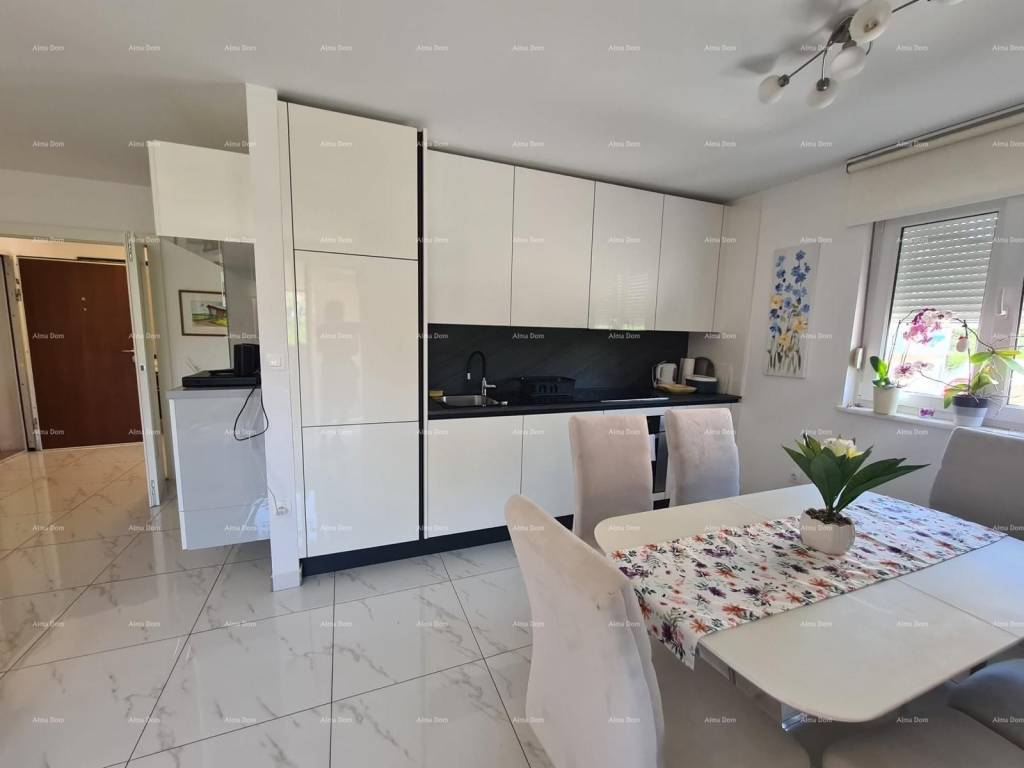 An apartment for sale in an attractive location in Pula, only 120m from the sea. The apartment is located on the first floor and consists of a hallway, bathroom, two bedrooms and a kitchen with dining room and living room. The hallway is spacious and connects the kitchen and dining room, bedrooms and bathroom. Each bedroom consists of a double bed. Next to it is a larger dining table for several people. The living room consists of a large sofa set with an armchair and access to a covered outdoor terrace.The apartment has one parking space in front of the building itself.PVC WINDOWS AND DOORS - AIR CONDITIONING AND FLOOR HEATING (ENTIRE APARTMENT EXCEPT BEDROOMS).Close to school, kindergarten, shops, sports fields, bus stops and other important things.For more information, we are at your disposal:Azra+385 91 611 5706+385 98 420 885azra@almadominvest.com