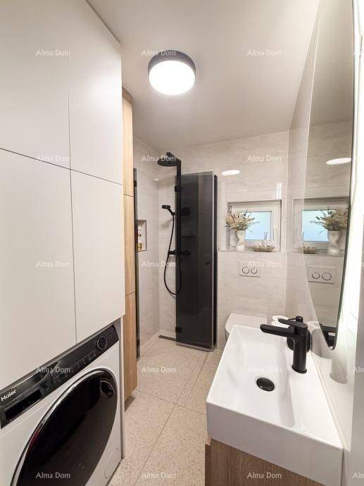 We offer a modern, technologically advanced apartment in a new building that combines cutting-edge technology, functional design and a private outdoor space/garden of 11 m2.Located in a quiet part of Medulin, the apartment is located on the first floor of a neat apartment building and is ready to move in – without additional investment.Total area: 39.73 m², and the apartment includes:open living room with kitchen and dining areaseparate bedroom, modern bathroom, spacious balcony (approx. 8m2) with access from the living room and bedroom.private garden on the ground floor (11.20 m²)own parking space, with the possibility of parking another vehicle behind.The smart management system allows you to control all key functions via a mobile device – anytime, anywhere: the option to open the front door, regulate underfloor heating in all rooms, air conditioning, washing machine...Additional features:Danfoss underfloor heating with Wi-Fi thermostats in each roomMitsubishi air conditioning for heating and coolingRecovery system for a constant supply of fresh airElectric blinds and LED ambient lighting, controlled by remote control.The combination of advanced technology, comfort and a quiet location makes this property an ideal choice for living, vacation or tourist rental.The ownership of the apartment is 1/2, determined by the floor plan and a certified inter-ownership agreement. The building has a use permit.For more information:Azra Valjevac+ 385 91 611 5706+385 98 420 885azra@almadominvest.com