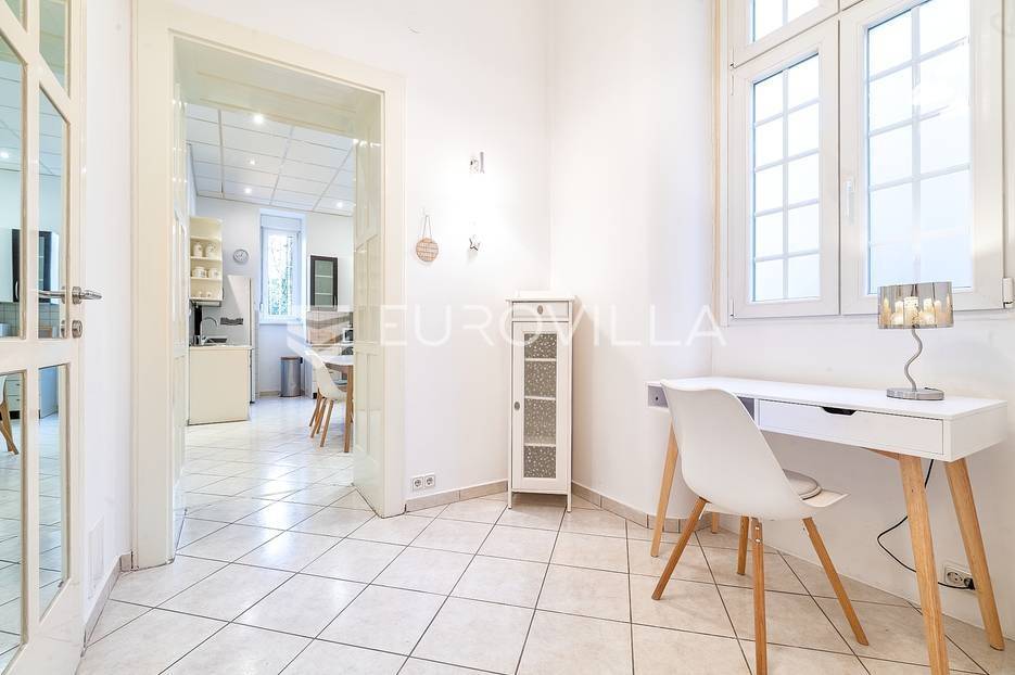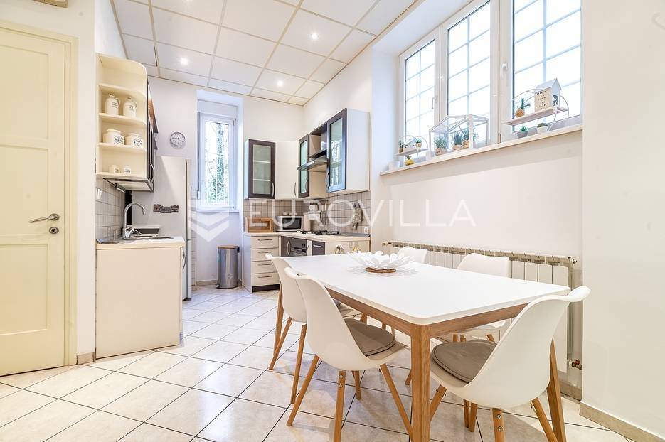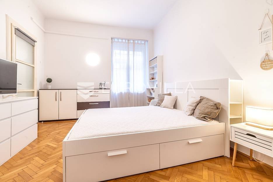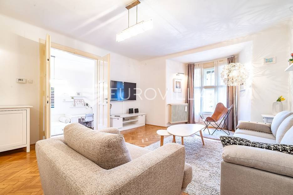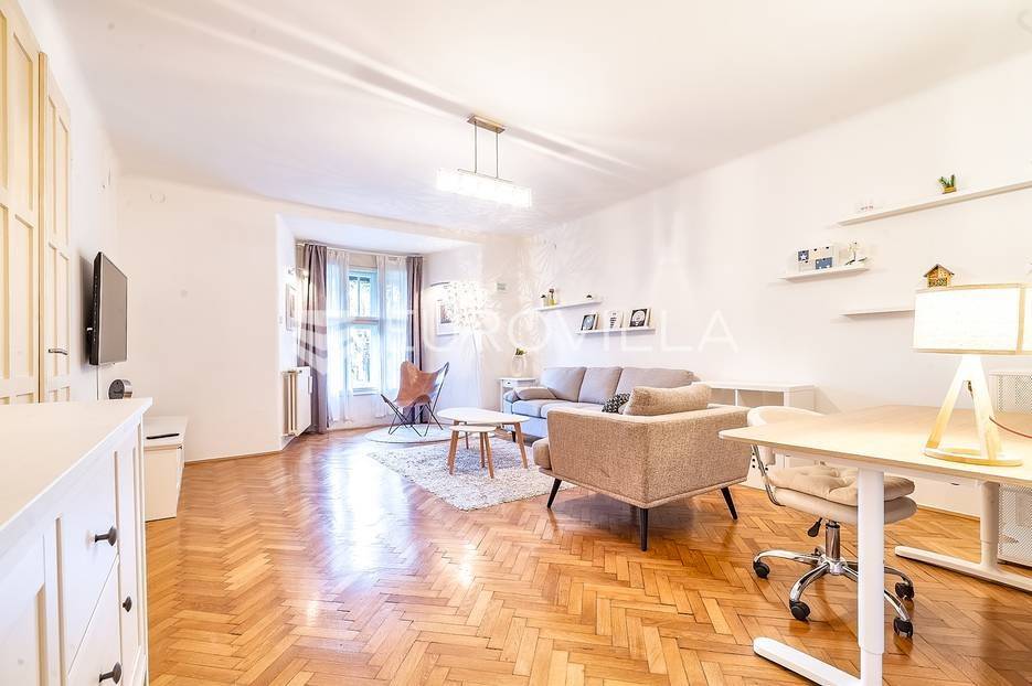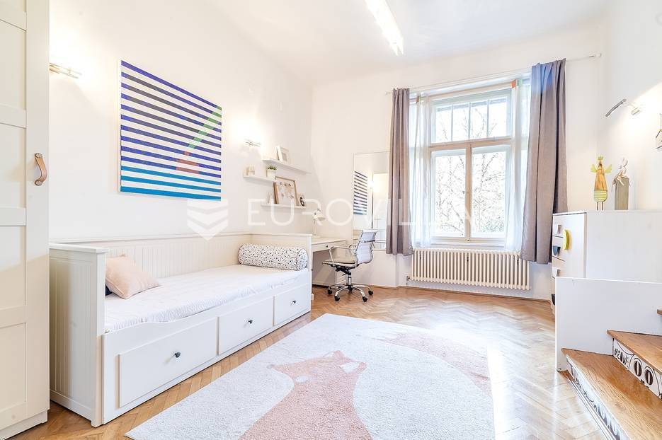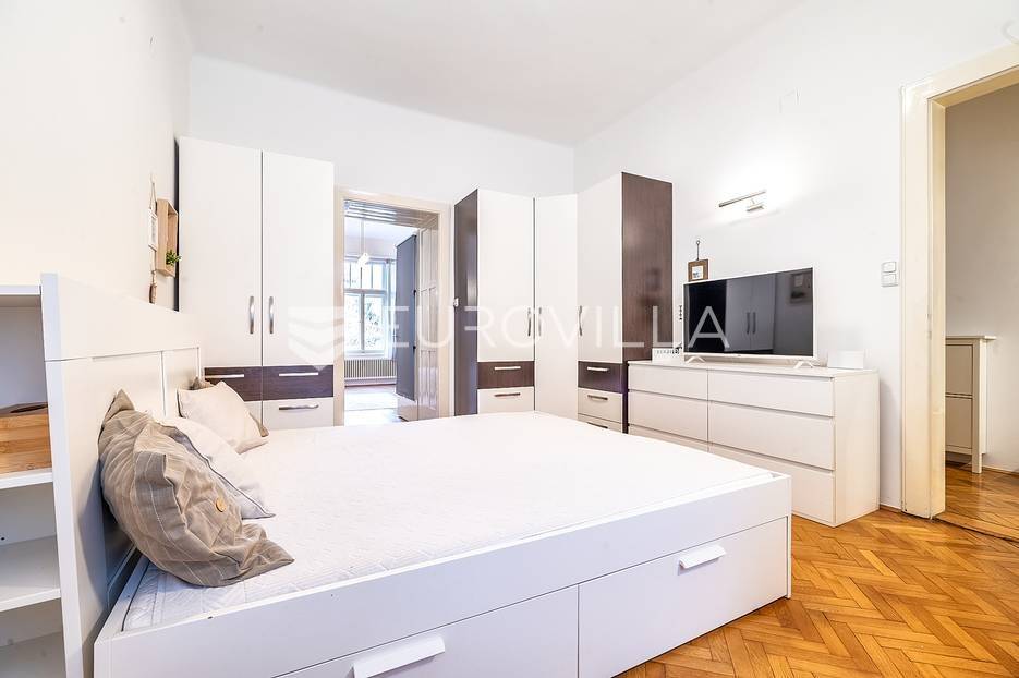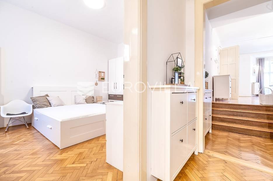 Mažuranićev trg, prostrani trosobni stan površine 109 m2 u visokom prizemlju odlično održavane zgrade.Sastoji se od ulaznog hodnika, kuhinje spojene s blagovaonicom, ostave/vešeraja, gostinjskog toaleta, kupaonice, dvije spavaće sobe, radnog kutka te velikog dnevnog boravka.Kompletno opremljen i namješten.Izvrsna lokacija, blizina javnog gradskog prijevoza, trgovina, Botaničkog vrta, HNK.Za sve ostale informacije stojimo Vam na raspolaganju.
