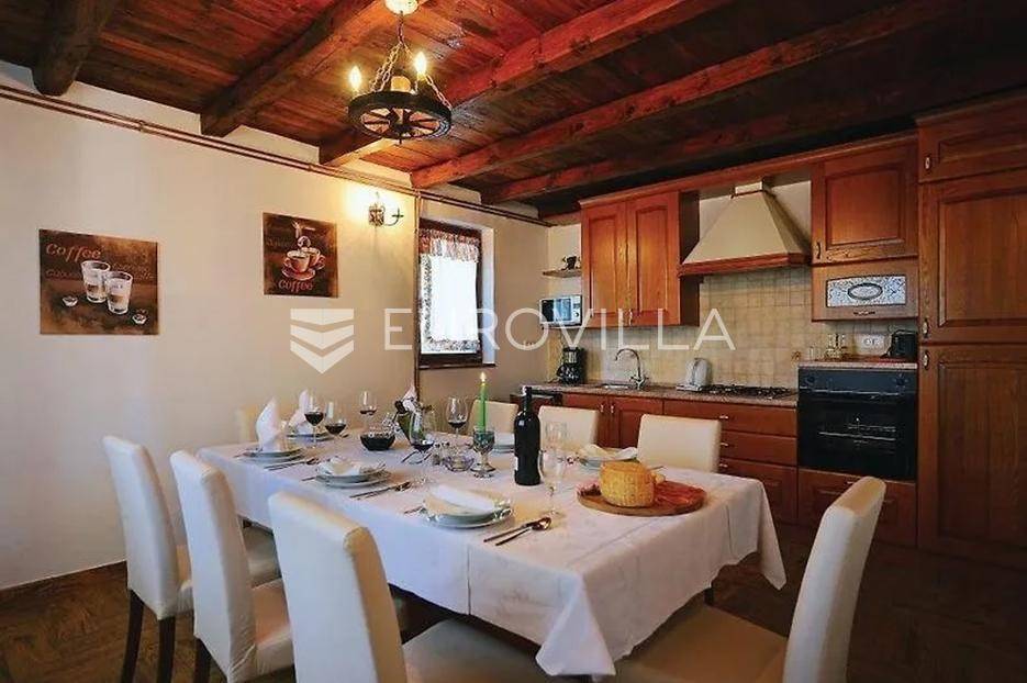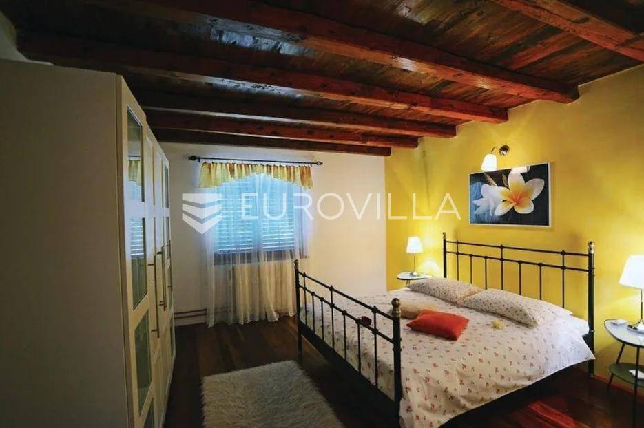 U Kršanu, u mirnom naselju nalazi se i ova kamena kuća s bazenom, prostranom terasom te ugodnim dvorišnim prostorom za opuštanje gdje se na raspolaganju nalazi i roštilj.Kuća se sastoji od 4 spavaće sobe, 2 kupaone, dnevnog boravka, blagovaone te potpuno opremljene kuhinje s perilicom posuđa, mikrovalnom pećnicom, perilicom rublja, hladnjakom i pećnicom. Od opreme nudi također WiFi te TV ravnog ekrana sa satelitskim programima. Hlađenje i grijanje preko klima uređaja.Opatija je udaljena 40 km, a Labin 14 km. Do najbliže Zračne luke Pula ima 51 km.Kućni ljubimci su dozvoljeni. Stan je dostupan za najam od 1.10.Za više informacija stojimo Vam na raspolaganju.