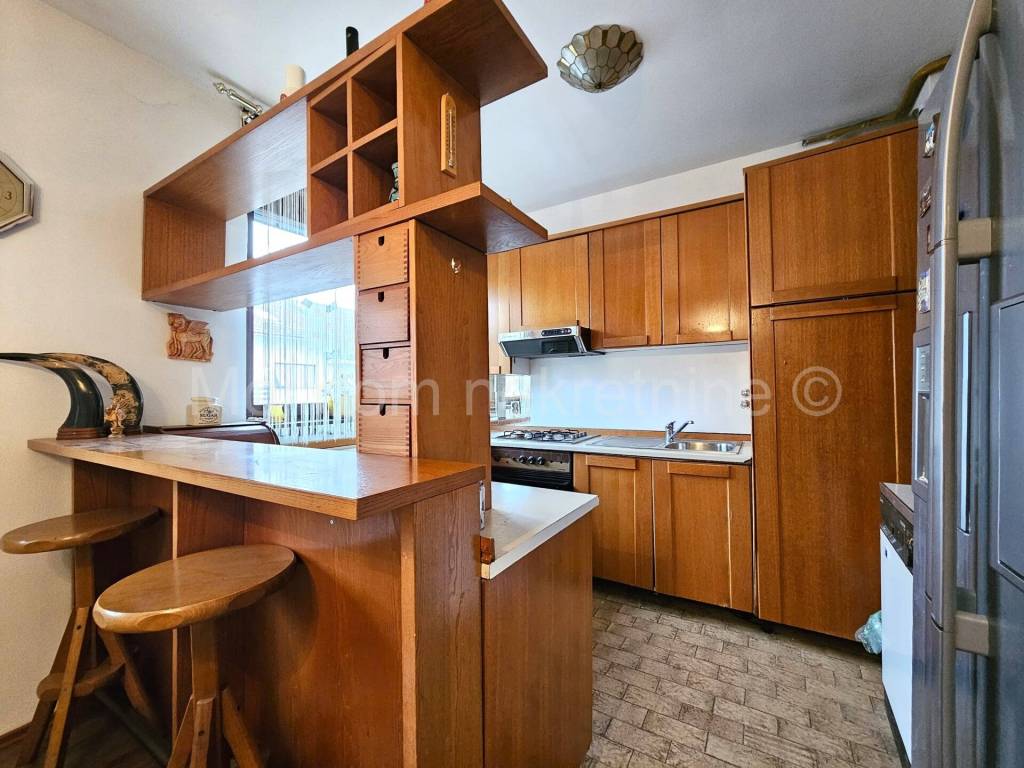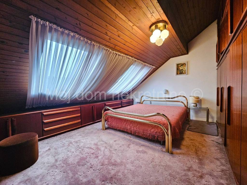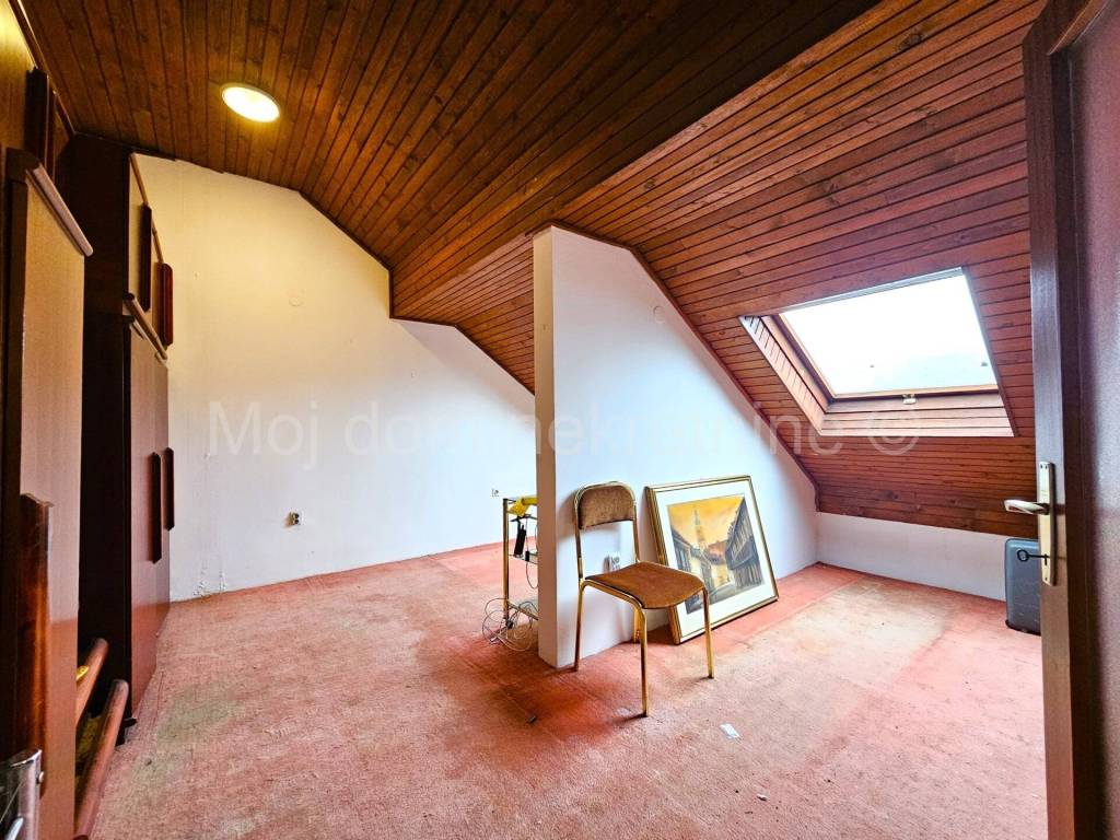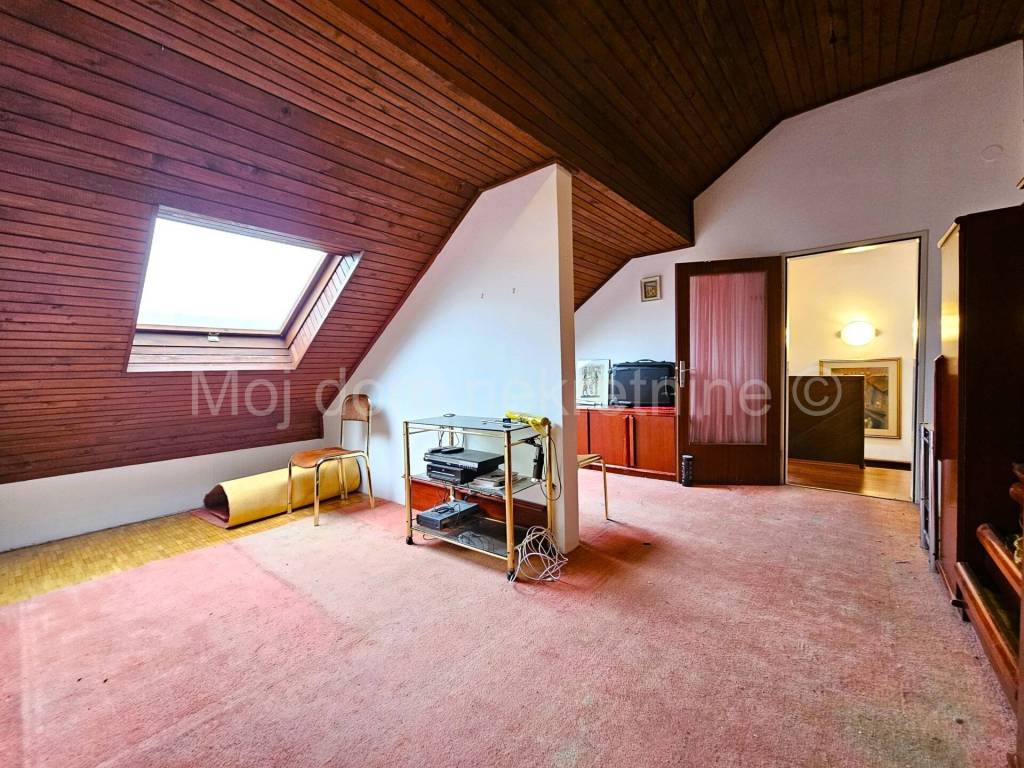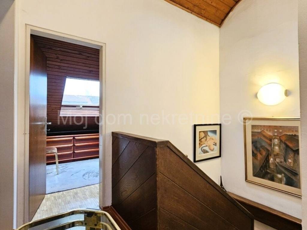 Prodaje se dvoetažni 5 sobni stan s terasom. Proteže se na prvom katu i potkrovlju manje zgrade. Stan je izrazito svijetao zbog svoje dvostrane orijentacije. Smješten je u blizini vrtića, škole, doma zdravlja, trgovine, tramvajske stanice te drugih bitnih sadržaja. Stanu pripadaju spremište u prizemlju (12.24m2) i garaža u prizemlju (13.46m2) te mjesto za parking ispred garaže. U dvorištu zgrade ograđen je dio vrta koji stan koristi.