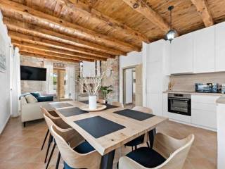 We offer an Istrian stone villa located in a well-maintained settlement, with authentic Istrian architecture and modern comfort. The villa is ideal for vacation, living or tourist rental. The property is two-storey. On the ground floor there is an open-concept living area with a kitchen, dining room and living room with a fireplace, a bathroom and a large covered terrace. On the first floor there are four bedrooms, two bathrooms and a terrace with a view of the surroundings. The villa is sold fully furnished and equipped, ready to move in or rent. On the fenced plot there is a 30 m² heated pool with a paved sunbathing area, an outdoor barbecue and a landscaped courtyard that provides privacy and peace. This property represents an excellent opportunity for those looking for an authentic Istrian villa, either for their own enjoyment or as an investment in tourism.