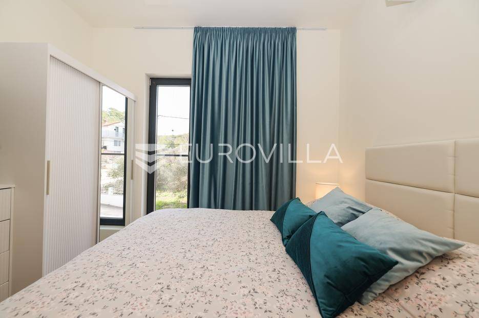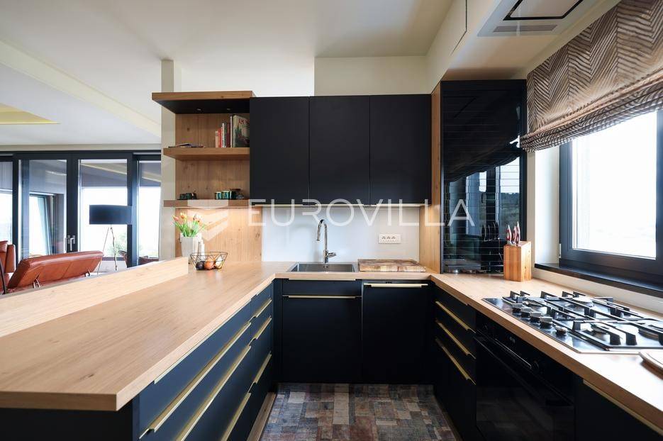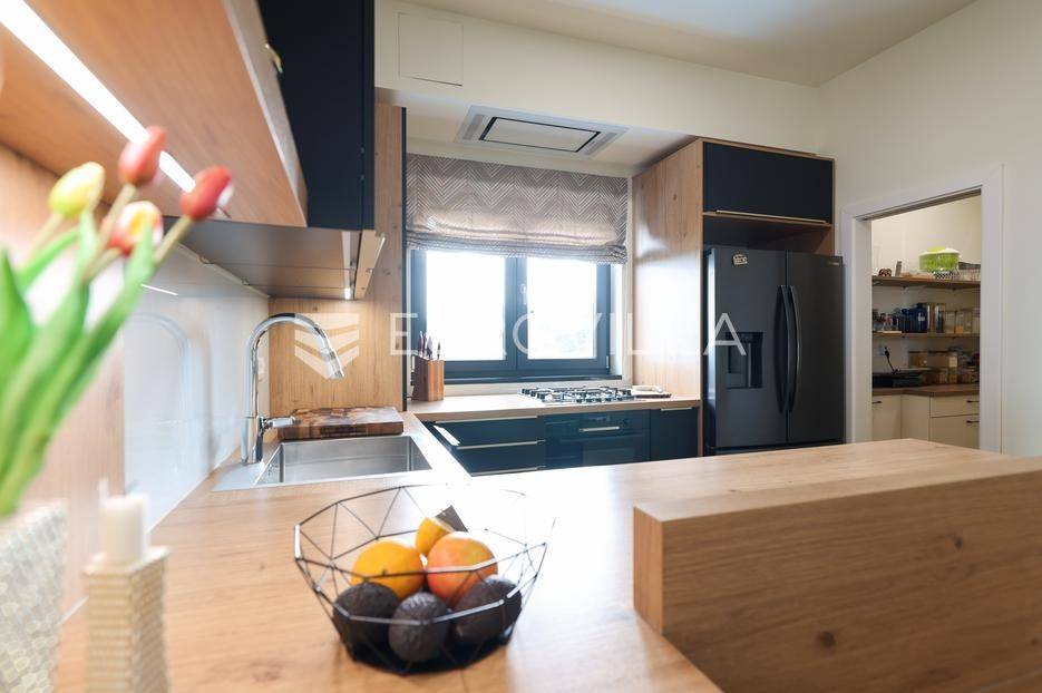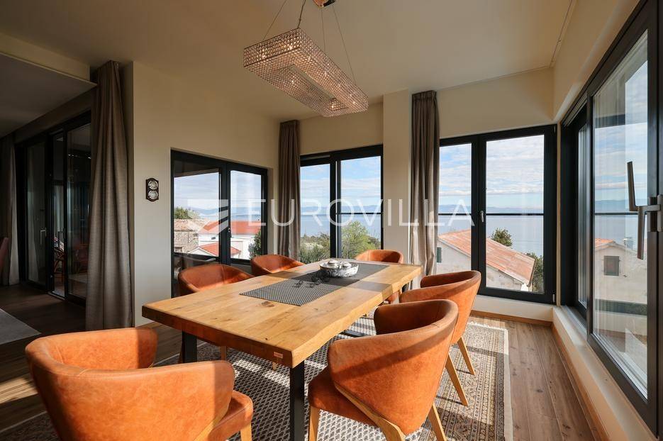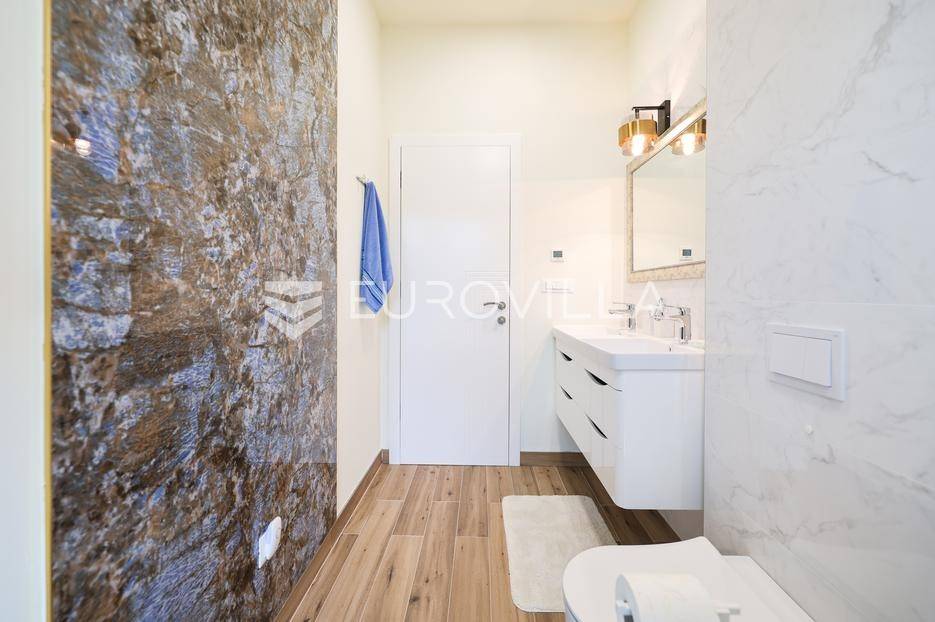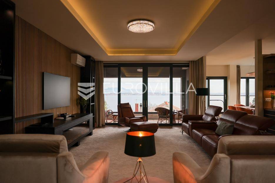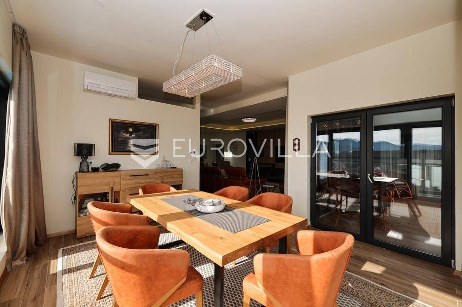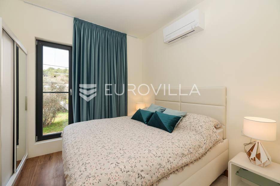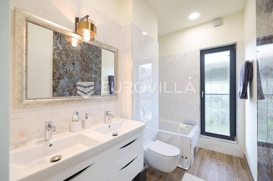 Ova jedinstvena dizajnerska vila smjestila se na otoku Ugljanu, u mjestu Lukoran.Prostire se na zemljištu površine 1061 m2.Prizemlje se sastoji od ulaznog prostora, gostinjske spavaće sobe, kupaonice, te natkrivene terase površine 60,4 m2. U prizemlju se nalazi i sauna, ljetna kuhinja s kominom te garaža za dva vozila.Na prvom katu nalazi se master soba sa vlastitom kupaonicom i garderobom te izlazom na terasu, koja povezuje dnevni boravak i blagovaonicu. Vila ima i lift koji povezuje podrum, prizemlje i prvi kat.Prostrani dnevni boravak, kuhinja i blagovaonica su otvorenog koncepta. Na istoj etaži nalaze se još jedna spavaća soba, kupaonica, radna soba, spremište i praonica.S terase i dnevnog boravka pruža se prekrasan pogled na more i grad Zadar, a u dvorištu se nalazi i bazen.Prostrani podrum proteže se duž cijele etaže.Vila je vrhunski i kvalitetno opremljena te nudi potpuni užitak stanovanja i boravka u prostoru.Uz potpuno namještenu i opremljenu vilu dolazi i jet ski te vez za brod.Izuzetna lokacija uz more, jedinstven pogled i zelenilo ovu vilu čine izuzetnom prilikom na tržištu nekretninama.Više informacija na upit.