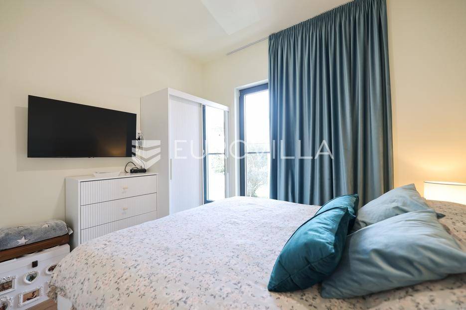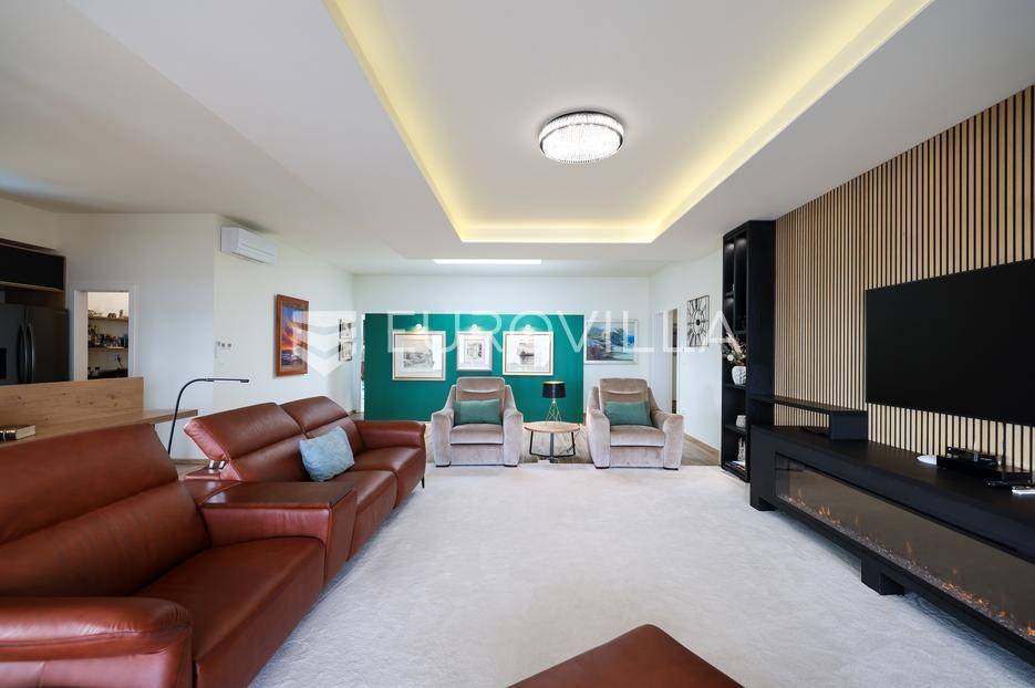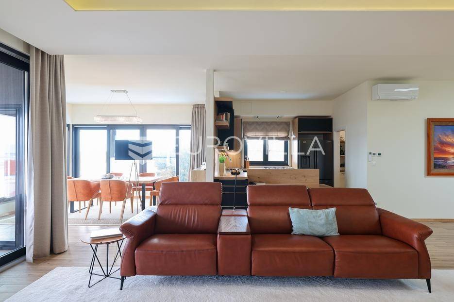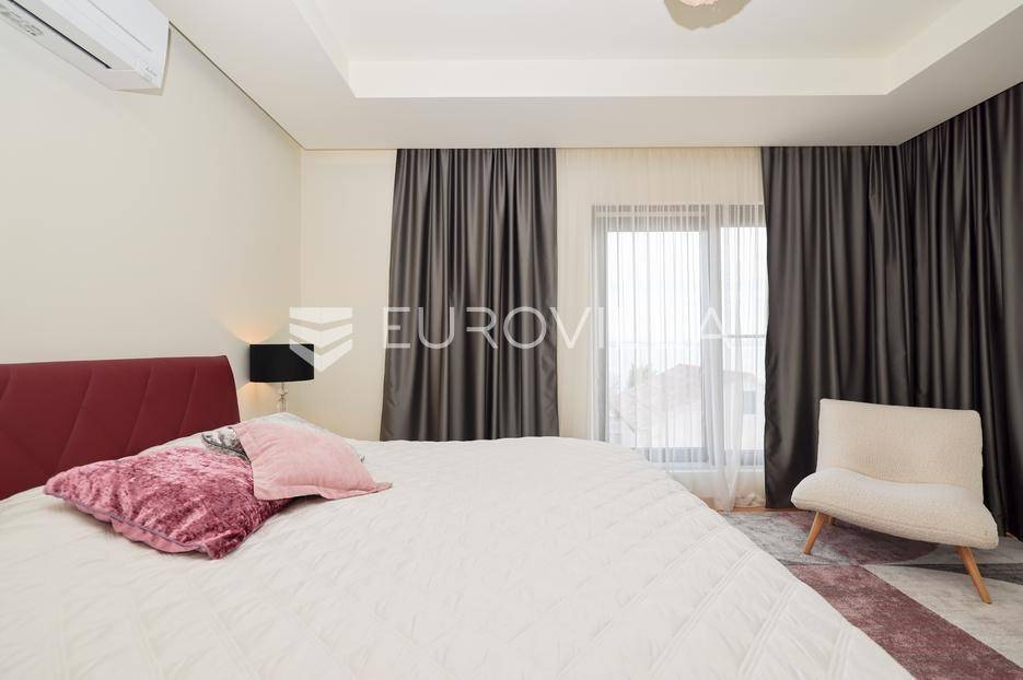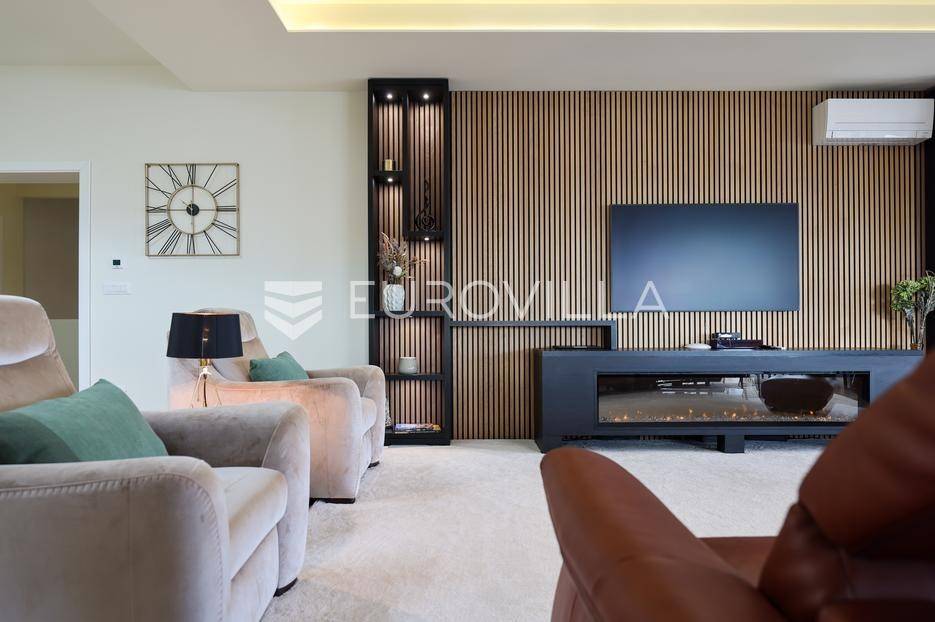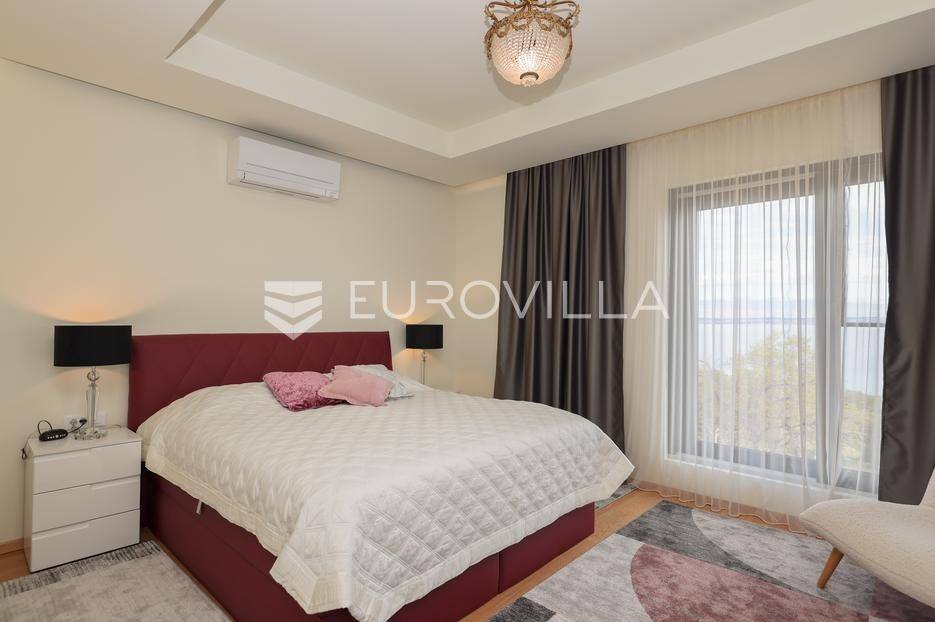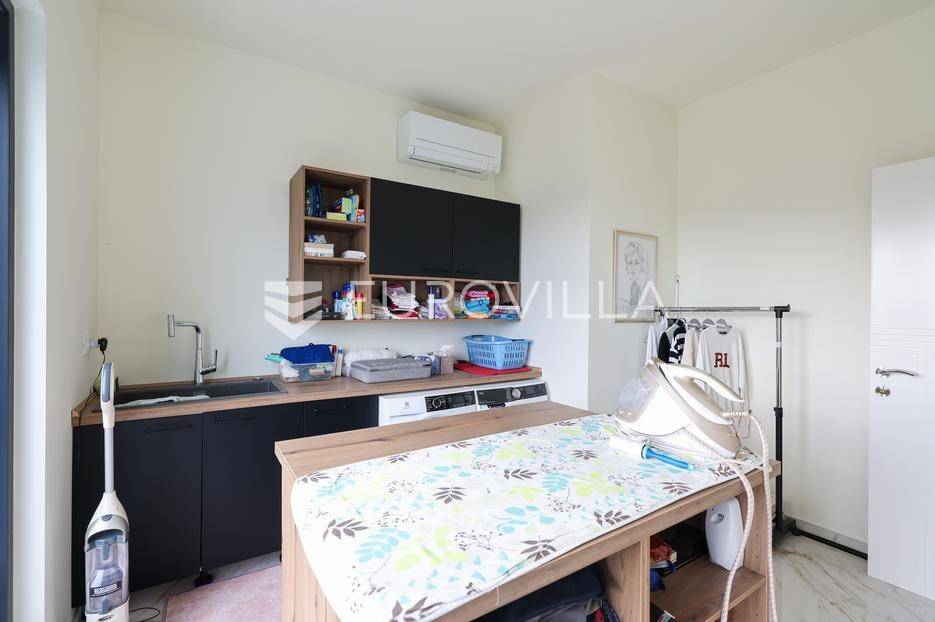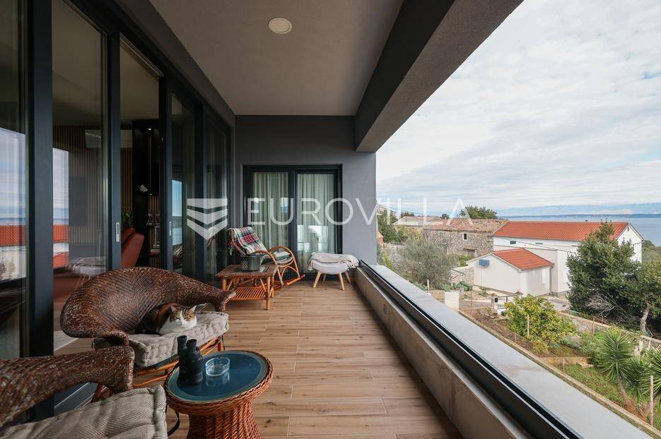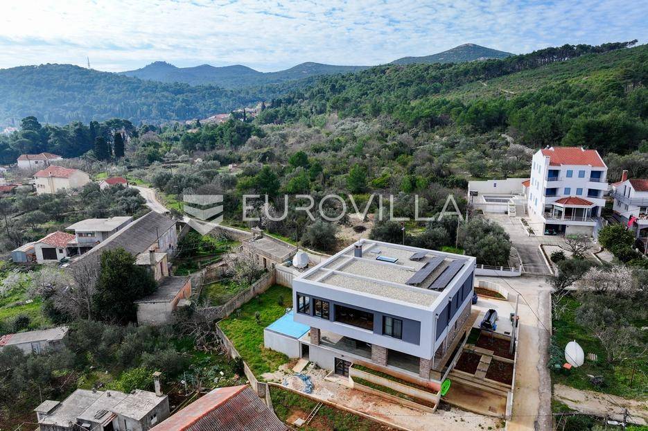 Ova jedinstvena dizajnerska vila smjestila se na otoku Ugljanu, u mjestu Lukoran.Prostire se na zemljištu površine 1061 m2.Prizemlje se sastoji od ulaznog prostora, gostinjske spavaće sobe, kupaonice, te natkrivene terase površine 60,4 m2. U prizemlju se nalazi i sauna, ljetna kuhinja s kominom te garaža za dva vozila.Na prvom katu nalazi se master soba sa vlastitom kupaonicom i garderobom te izlazom na terasu, koja povezuje dnevni boravak i blagovaonicu. Vila ima i lift koji povezuje podrum, prizemlje i prvi kat.Prostrani dnevni boravak, kuhinja i blagovaonica su otvorenog koncepta. Na istoj etaži nalaze se još jedna spavaća soba, kupaonica, radna soba, spremište i praonica.S terase i dnevnog boravka pruža se prekrasan pogled na more i grad Zadar, a u dvorištu se nalazi i bazen.Prostrani podrum proteže se duž cijele etaže.Vila je vrhunski i kvalitetno opremljena te nudi potpuni užitak stanovanja i boravka u prostoru.Uz potpuno namještenu i opremljenu vilu dolazi i jet ski te vez za brod.Izuzetna lokacija uz more, jedinstven pogled i zelenilo ovu vilu čine izuzetnom prilikom na tržištu nekretninama.Više informacija na upit.