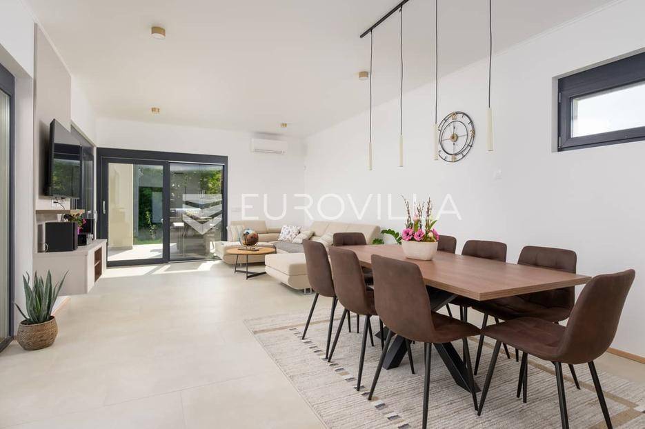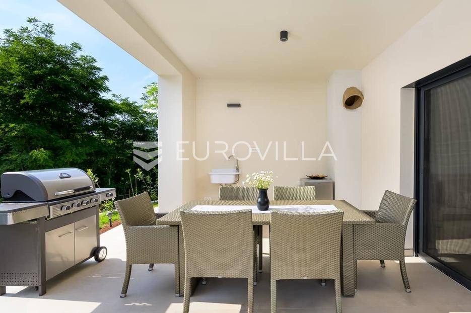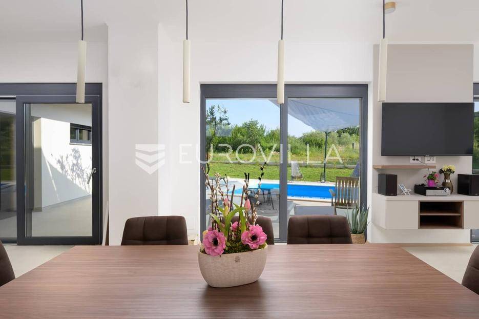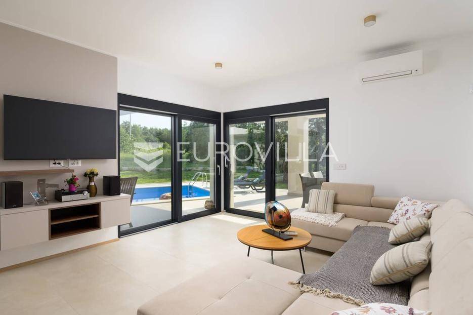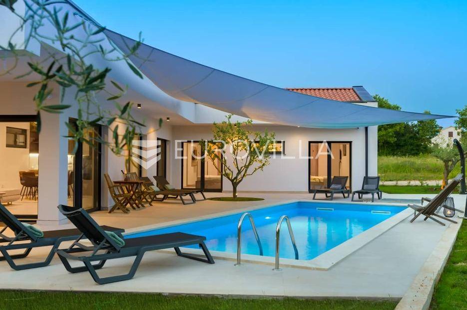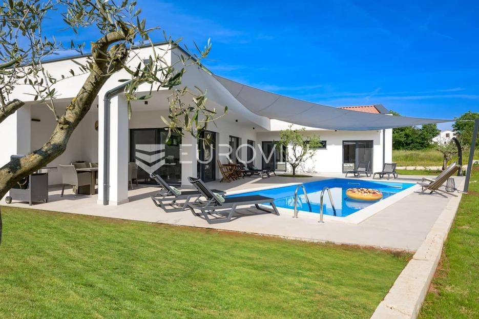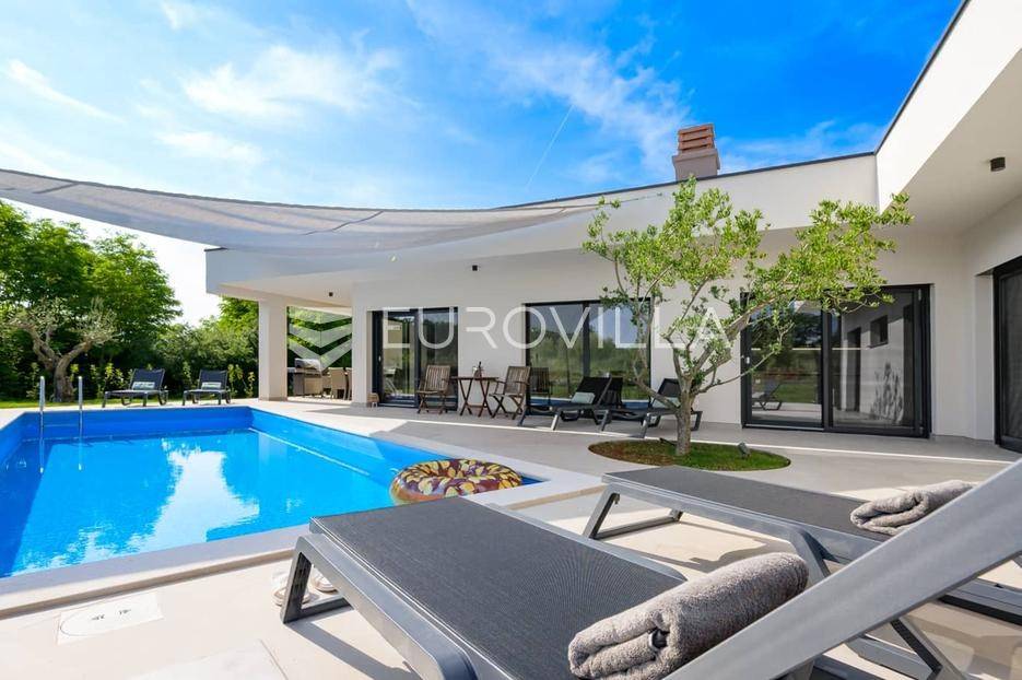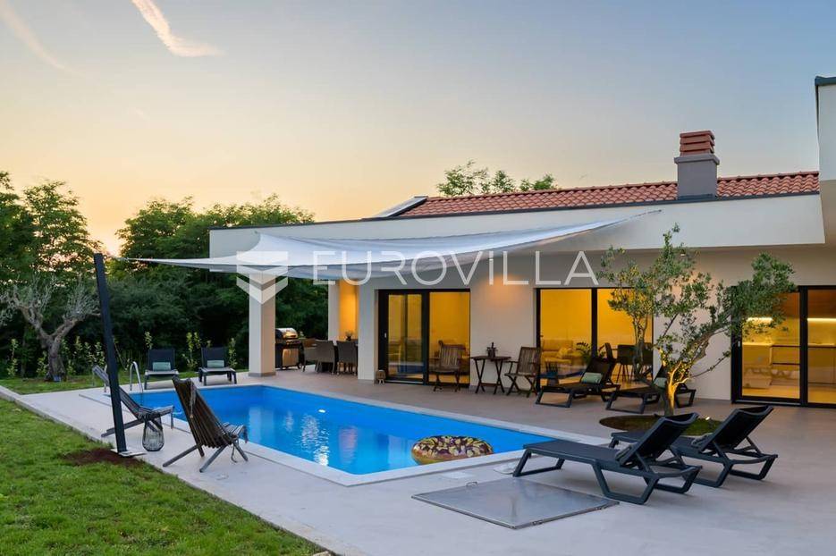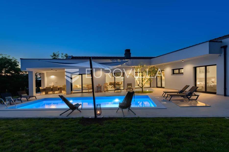 Istra, Matohanci, smještena u istarskom selu, svega nekoliko kilometara od šarmantnog Rovinja na prodaju prodaje prizemnica bruto površine 188m2 na zemljištu od 549m2 s grijanim bazenom i 3 spavaće sobe.Zatvorene površine 139m2, kuća raspolaže s 3 prostrane spavaće sobe i 2 moderno uređene kupaonice, vešeraja te kuhinje, blagovaone i dnevnog boravka otvorenog tlocrta. U središtu imanja nalazi se privatni grijani bazen, okružen zelenilom i udobnim prostorom za sunčanje i večernja druženja.Kuća je opremljena podnim grijanjem na dizalicu topline dok se hlađenje vrši putem Daikin klima uređajima.Za više informacija stojimo vam na raspolaganju
