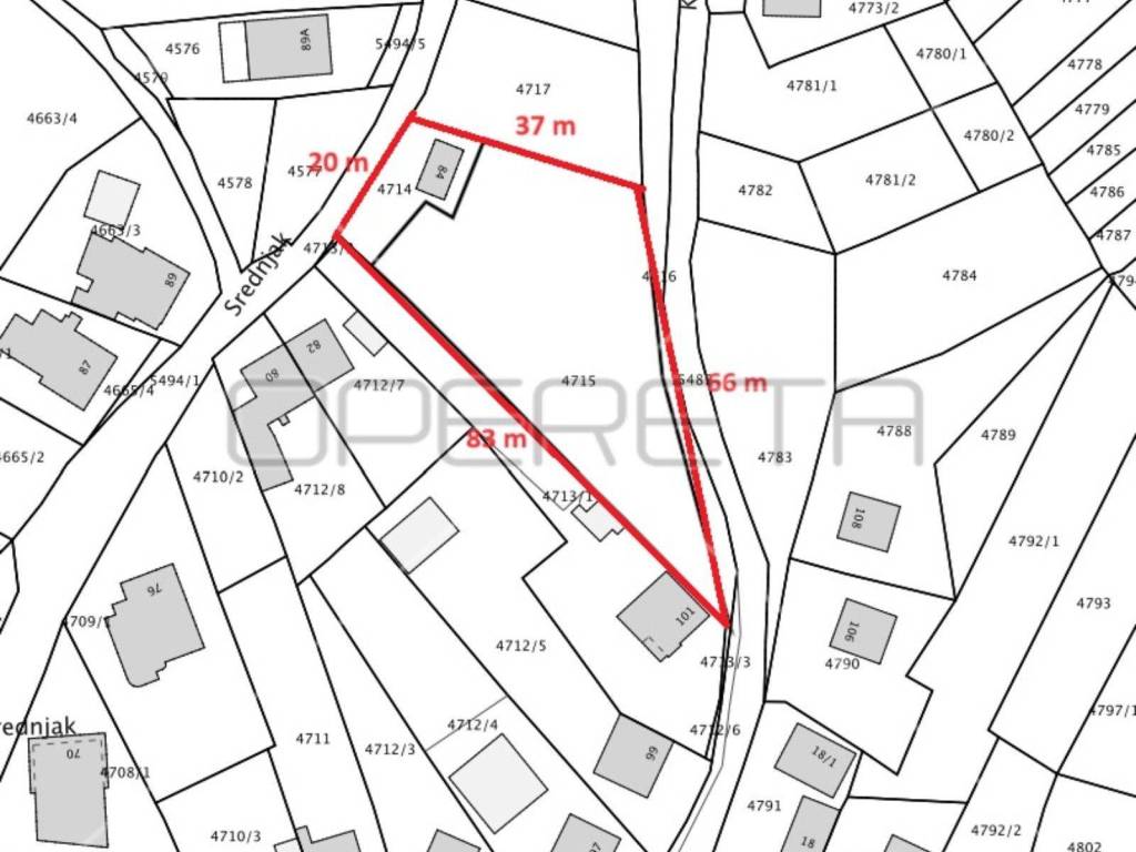 PRODAJA ZEMLJIŠTA, VRAPČE, Srednjak, 1852 m2. Zemljište se nalazi na lijepoj lokaciji sa pogledom prema Zagrebu sa prilazom na dvije strane. Na njemu se nalazi i objekt koji je za adaptaciju i posjeduje svu potrebnu dokumentaciju. Zemljište je stambene namjene i potrebno ga je parcelizirati da bi se dobila maksimalna izgradivost od cca 1080 BRP sa 3 zasebna objekta. Najmanja površina građevne čestice je 600 m2. Najveća izgradivost građevne čestice je 30%. Najveći GBP je 400 m2 za samostojeće, a 300 m2 za poluugrađene građevine. Koef. izgradivosti je