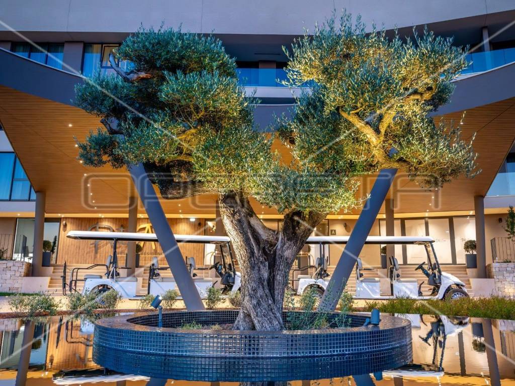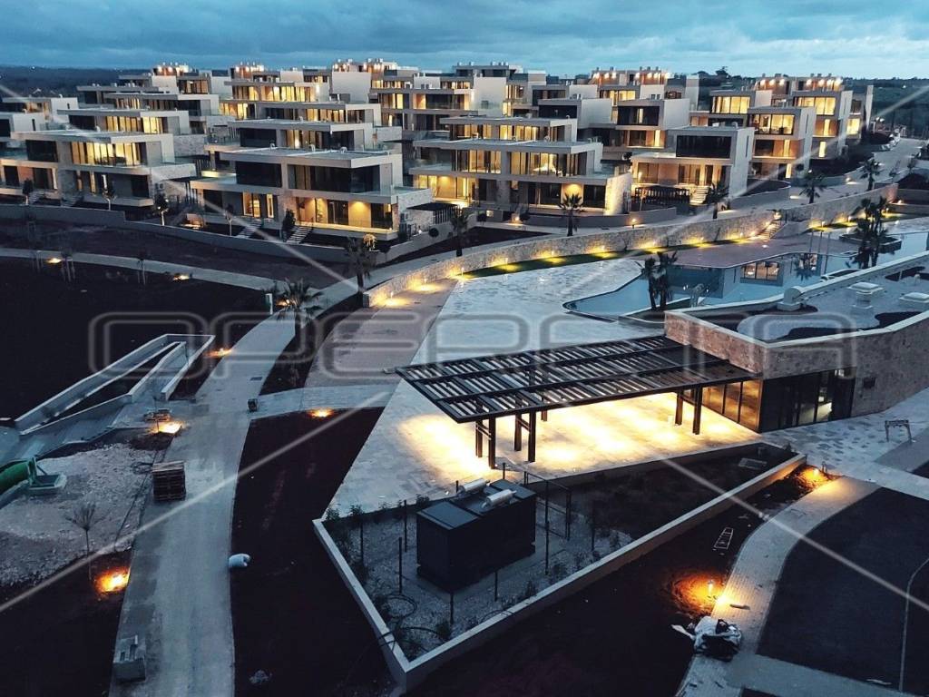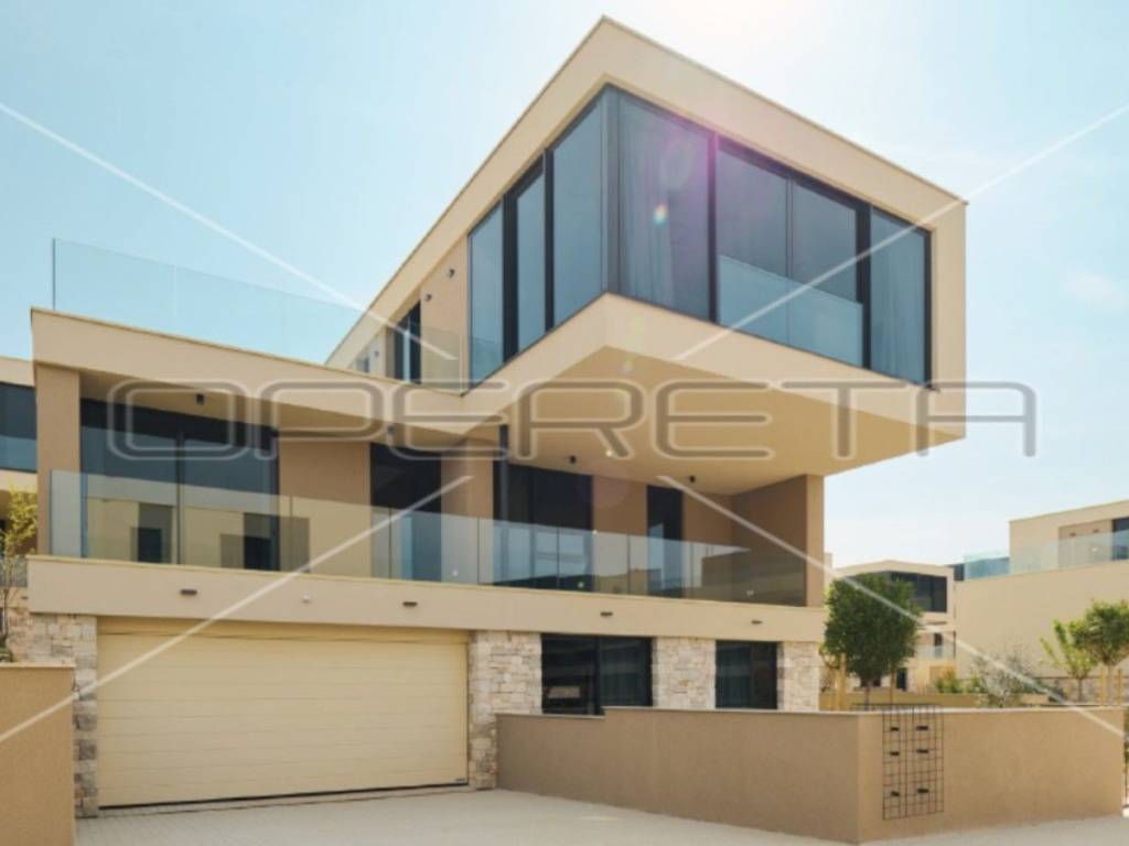 Brand new villa, with seaview and walking distance to the beach in Istria. This villa is located within a luxury tourist resort with the largest rooftop swimming pool in Istria, proximity of golf courses, spa, restaurants, etc. Some of the villas type 3, southern entrance with elevator are still available such as no 35. They consist of BASEMENT (staircase, hallway, tavern, wine cellar, toilet, playroom, elevator, storage), GROUND FLOOR (staircase, entrance and hallway, studio room, bathroom, equipment room, kitchen and garage), 1st FLOOR (staircase, hallway, laundry room, two bedrooms and two bathrooms - outdoor area: terrace and covered terrace), 2nd FLOOR (kitchen with dining room and living room, toilet, bedroom and bathroom - outdoor area: terrace). The price includes furniture and equipment, does not include VAT. Return on investment - tourist rental possible.