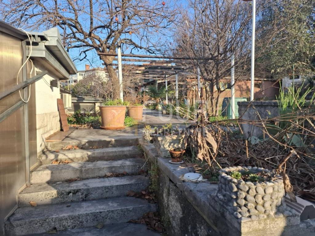 A semi-detached house located in the very center of Matulji, just fifty meters from all key amenities in an extremely sought-after and well-connected location is for sale. The house is situated on a plot of 910 m2, with a high ground floor and first floor, a total of three residential units, several terraces, a garden, and auxiliary buildings, offering a beautiful view of the sea and the Kvarner Bay from the upper floors. The house is habitable, but it is intended for adaptation and refreshment, primarily through the replacement of part of the carpentry and interior decoration, in order to fully utilize its potential. On the ground floor there is an apartment currently partially used as office space, which opens up the possibility of a combination of residential and commercial use or an additional source of income through renting. On the first floor, there are two residential units that were originally formed by partitioning a larger apartment, and the space can easily be converted back as needed. The house has central oil heating, parquet flooring in the rooms, tiles in other areas, security doors, and a combination of PVC and wooden carpentry. The outdoor area is one of the significant advantages of this property. The garden is arranged in cascades, providing privacy and the possibility of creating a very attractive outdoor space. The land includes a legalized cellar of approximately 60 m2, a garden house of around 20 m2, and a separate building of around 60 m2 with water, electricity, and sewage connections, which, after adaptation, can become a self-contained apartment for rent. The value is also added by the greenhouse that can be converted into a summer kitchen or a space for socializing. The house has direct access from the road and one parking space, with the possibility of creating additional parking spaces. Due to its location, layout, multiple residential units, and additional buildings, this property represents an excellent opportunity for family living, long-term or tourist rental investment, or a combination of residential and commercial activities. Dear clients, agency commission is charged in accordance with the General Terms and Conditions.