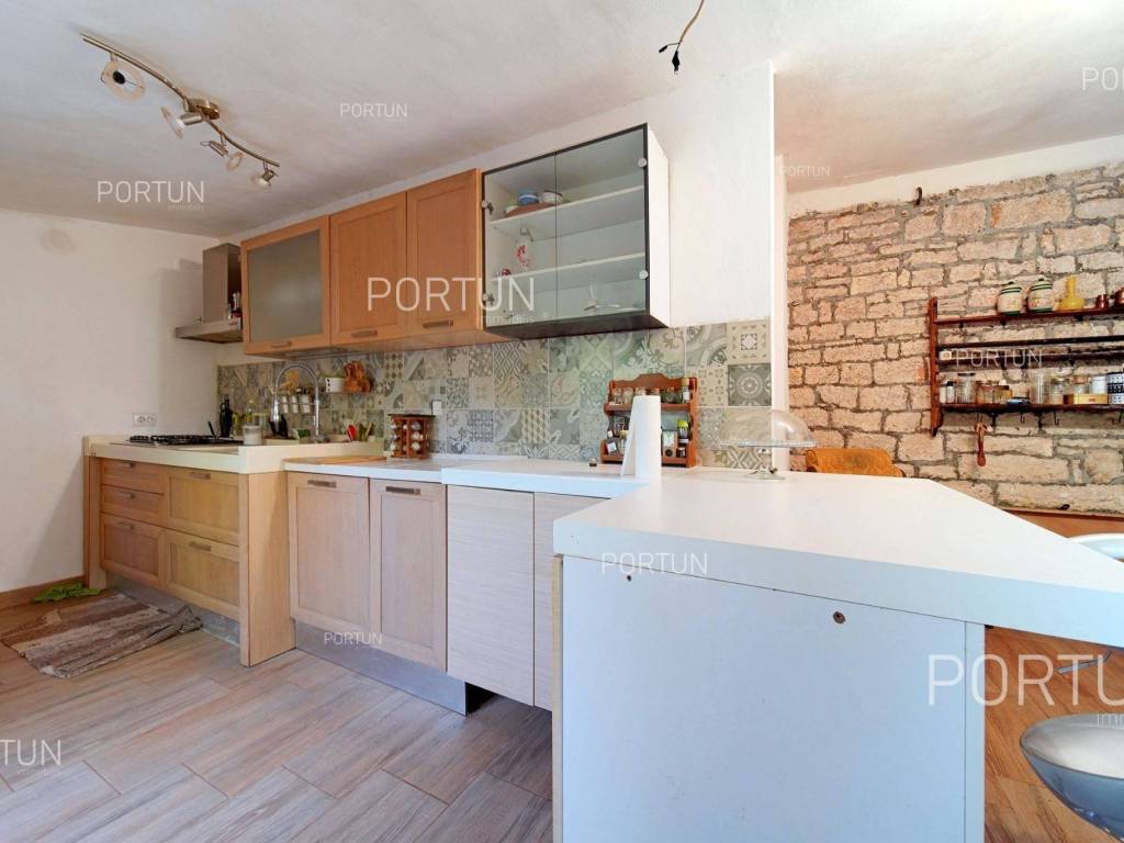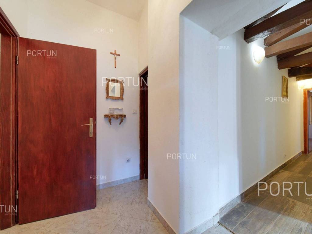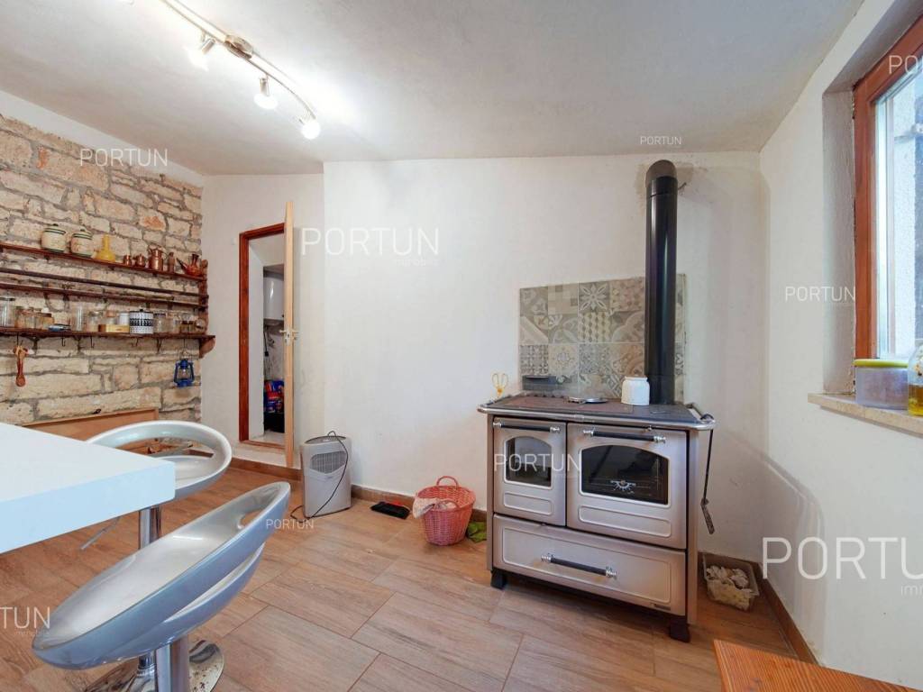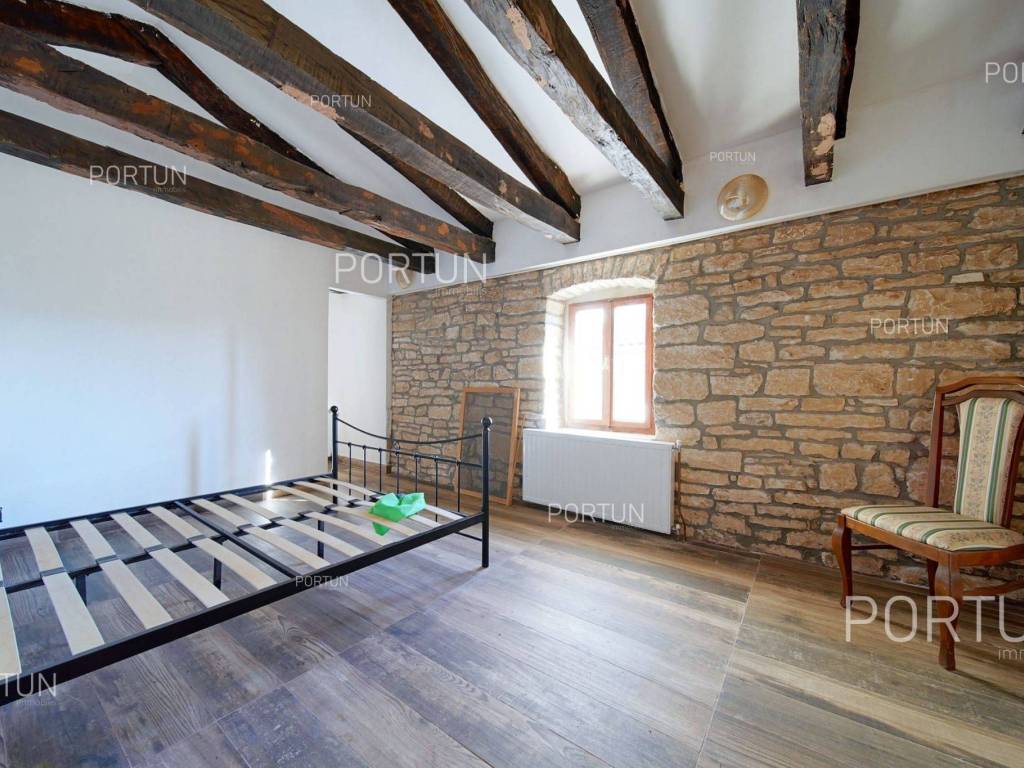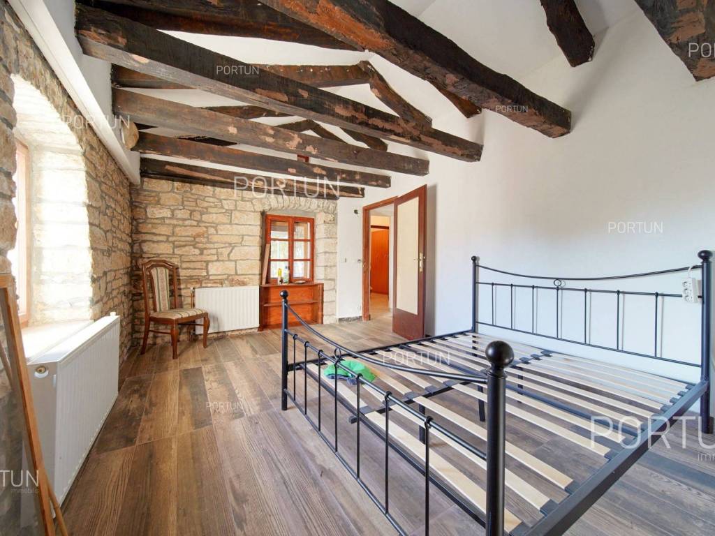 In the peaceful village between Žminj and Svetvinčenat lies a renovated stone house with a large building plot of 1,899 m2. This charming Istrian home combines traditional character with potential for future investment the construction of additional houses or a spacious estate surrounded by greenery.This stone house, built around 1900 and carefully restored, has retained its original character. The stone walls, wooden structure and roof covered with canal tiles create a warm and rustic atmosphere. On the ground floor there is a living room, kitchen and dining area, while the internal and external stairs lead to the upper floor with three bedrooms and a covered terrace.Next to the house there is a building plot within the village boundaries, covering 1,899 m2 ideal for constructing additional houses, a swimming pool or an olive grove. It is surrounded by olive trees, walnut and cherry, and enclosed by an old stone wall and wire fence. There is also a garage of 20 m2, a boiler room and a practical storage area for tools and equipment.Situated in the green hinterland of Rovinj, this property offers complete privacy while being only 2.6 km from Žminj, 6 km from Svetvinčenat and 22 km from Rovinj. Shops, restaurants, schools and kindergartens are nearby, making this house an excellent choice for peaceful living or investment in tourism.If you would like more information or to arrange a viewing, please feel free to contact us we will be happy to help you find your perfect home in Istria.If you love the charm of traditional architecture, explore our selection of old stone houses for renovation in Istria.Distances from the propertyŽminj | 2,6 kmSea | Beach 24 km Services | Food store 2,6 km - Cafe or bar 2,6 km - Inn or restaurant 2,8 km - Elementary School 3,3 km - Kindergarten 3,3 km - Health center 25 km - Pharmacy 3,2 km Sports and fun | Soccer field 3 km - Basketball court 3,3 km - Adventure park Glavani 19 km Nearby towns | Svetvinčenat 6 km - Rovinj 22 km Traffic | Highway entry Žminj 1,6 km - Pula Airport 35 km Attractions | Cave Feštinsko Kraljevstvo 10 km About the propertyThe estate which extends to 1.899 square meters comprises: Stone house | 3 Bedrooms - 2 Bathrooms - 2 Floors - 144,54 m2Garage | 1 Floor - 20,00 m2Extras Parking for two carsAbout the houseThe entrance to the house is on the ground floor level and the first floor, on the west side, and vertical communication takes place via an internal and external staircase. The basic architectural characteristics of this stone house are: Floors | Ground floor + First floor Orientation | South External walls | Stone wall Wooden floor structure Roof | Pitched roof covered with clay tiles Built approx. in 1900 Renovated 2008FurnitureFurniture | All furniture is included in the priceJoinery | Wooden joinery - PVC joinery with double glazing - Wooden shutters - Security entry door - Classic interior doorsHeating and cooling | Central heating - gas - Radiators - Furnace - wood - Gas boiler - ChimneyFlooring | Ceramic tilesOutdoor spaceGreen areas | Olive trees - Walnut tree - Cherry tree - VineFences | Old stone wall - Wire fenceDriveway | Metal door - Wing openingServices Connection to the power grid Connection to the water supply network Septic tank Paved public access roadReal estate statusThe land is located entirely within the boundaries of the construction area. DocumentationExtracted documents | Decision on the constructed condition of the building - Architectural snapshot of the existing stateArea calculationThe area of the house (154,54 m2) includes the areas of these spaces:Living area (Stone house) = 141,03 m2 x 1,00 = 141,03 m2*Covered terrace (Stone house) = 7,03 m2 x 0,50 = 3,52 m2**Garage (Garage) = 20,00 m2 x 0,50 = 10,00 m2***Areas are calculated with coefficient c= 1,00**Areas are calculated with coefficient c= 0,50Data source = Architectural snapshot of the existing stateThe total land area including the footprint of the building(s) amounts to 1.899 square meters. Data source = Cadastre data