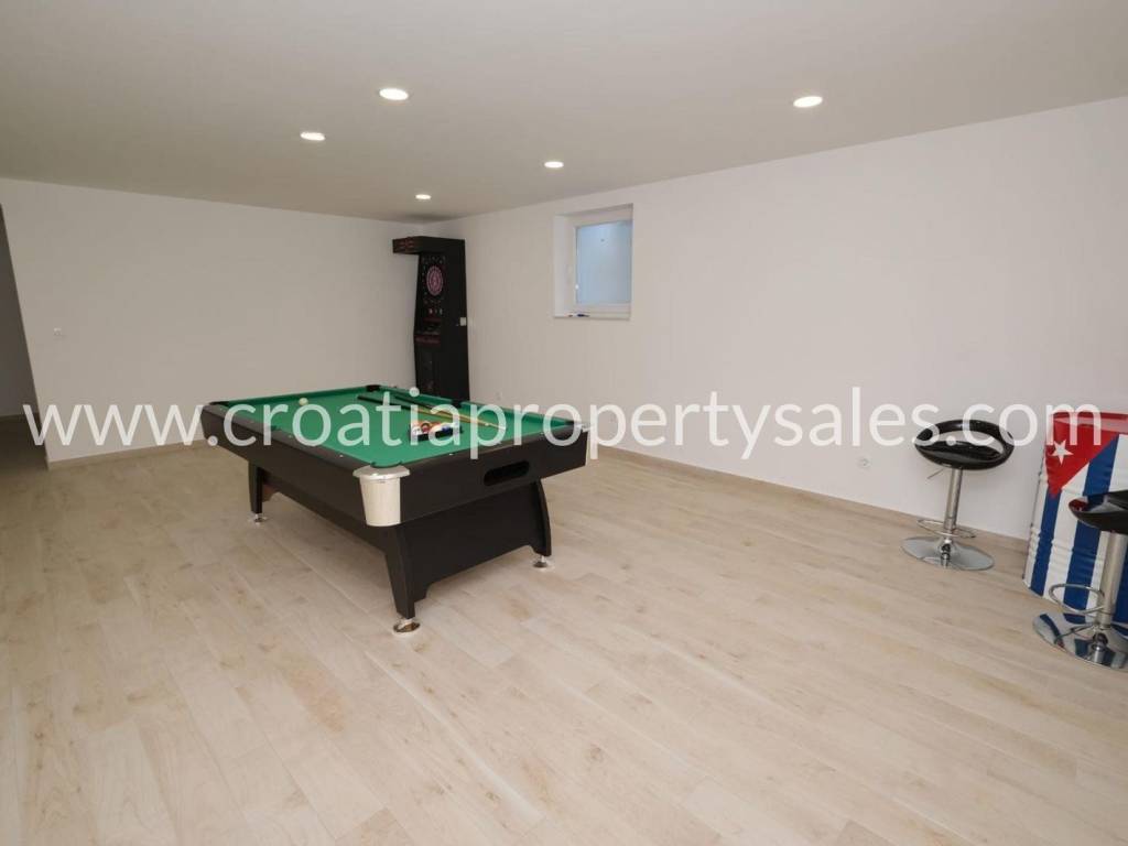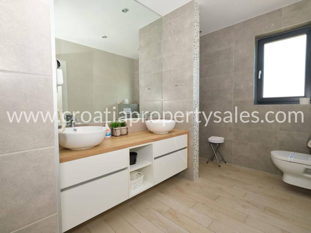 Luxury villa with swimming pool and sea view.On a plot of 750 m2, the villa is beautifully arranged with a garden, swimming pool, sunbathing area, seating and barbecue area and parking spaces.The villa has a total of 324 m2 and consists of a basement, ground floor and first floor. In the basement there is a tavern, laundry room, fitness room and sauna, jacuzzi and bathroom.On the ground floor there is a spacious living room, kitchen with dining room, toilet and pantry. On the first floor there are 4 bedrooms with bathrooms and a south-facing terrace.The villa is south-facing, bright and glazed, luxuriously equipped and decorated.It is pleasant to live in, close to all essential amenities, but it is also an excellent investment for those who want to engage in tourism.