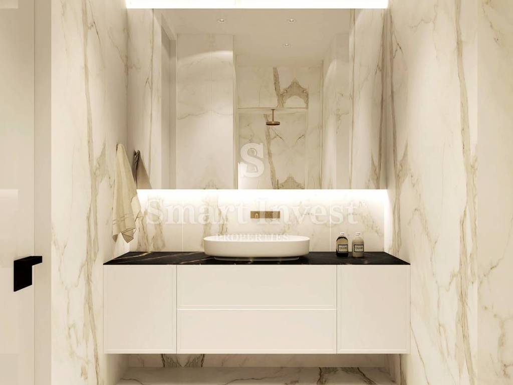 APARTMENT A1, 91.67 m2, fully equipped with designer furniture and top-notch appliances, is located on the ground floor and consists of a hallway, living room with kitchen and dining room, 2 bedrooms each with its own bathroom, and another additional bathroom.