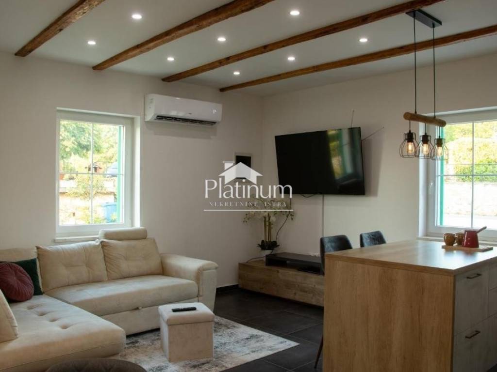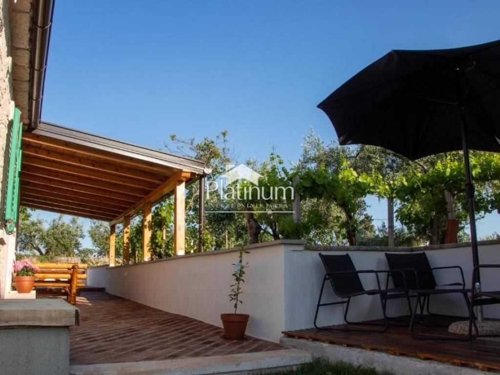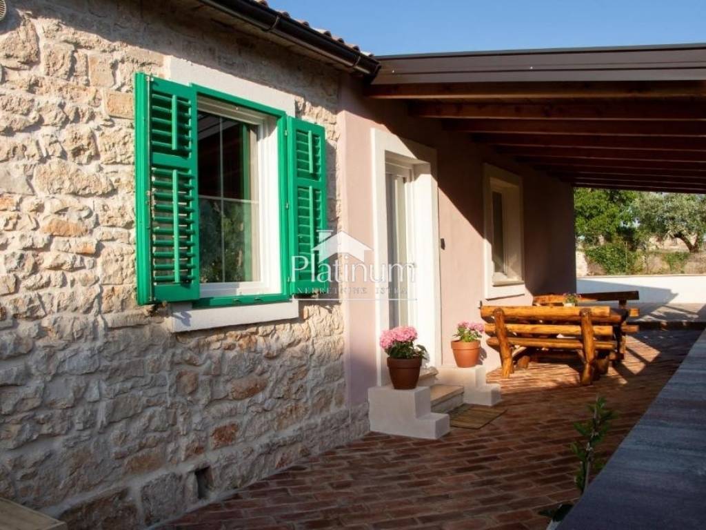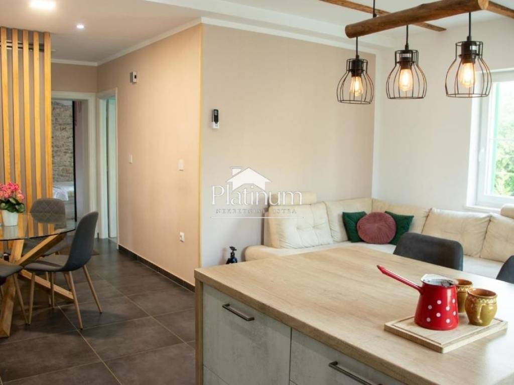 A fully furnished and furnished single-storey house of 69 m2 with the possibility of expanding the living space is for sale. It consists of two bedrooms, a living room with a kitchen and dining area, a bathroom and a hallway. In front of the house is a small covered terrace for dining or enjoying the outdoors. The yard is completely fenced and neatly maintained, where it is possible to build a swimming pool or children's entertainment facilities. Next to the house is an auxiliary building of 20 m2. The property is ideal as a vacation home due to its quiet location away from the city hustle and bustle as well as for lovers of a quiet family life outside the city. For all additional information, please contact us at +385976668173.