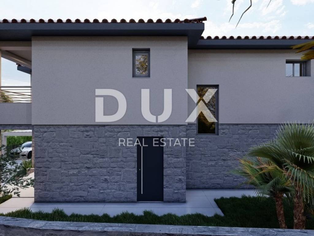 KRK ISLAND, DOBRINJ - Newly built Mediterranean house with private pool and sea view, on the edge of the green zone In a quiet environment of family houses and nature, in the vicinity of Dobrinj on the island of Krk, there is a new detached house waiting for its new owners. This property offers the perfect blend of luxury and comfort, ideal for anyone looking for a peaceful retreat close to the sea. The house is spread over a plot of 651 m² and includes two floors with a total of 251 m² of living space. On the ground floor there is an entrance area, a laundry room, a toilet, a bedroom with its own bathroom, a modern kitchen with a dining room and a spacious living room that leads to a covered terrace and a landscaped garden. On the first floor, there are three spacious bedrooms, each with its own wardrobe and bathroom, while two rooms share a common terrace with a beautiful view of the sea. The house is built of the highest quality materials, with floor coverings in a combination of ceramics and vinyl, top-quality sanitary ware, PVC carpentry, underfloor heating with a heat pump, and an air-conditioned heating and cooling system. There is also preparation for a sauna and a jacuzzi, so that your comfort is complete. The exterior design includes Mediterranean vegetation that ensures privacy, a fenced garden with a space for relaxation, a summer kitchen, a heated swimming pool and two covered parking spaces. The location is extremely quiet, and only 2,000 m separates you from beautiful beaches, making this property an ideal place for living or vacationing. The property is currently under construction, and the completion of the works and occupancy are planned by the summer of 2025. Opportunity to become the owner of this beautiful house on the island of Krk!! *** Dear clients, the agency commission is charged in accordance with the General Terms and Conditions. https://www.dux-nekretnine.hr/opci-uvjeti-poslovanja ID CODE: 31817 Iva Mršić Agent s licencom Mob: +385 91 575 9388 Tel: +385 91 480 8808 E-mail: iva@dux-nekretnine.hr www.dux-krk.com