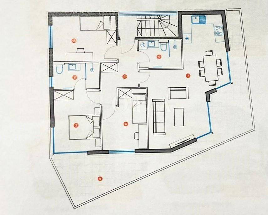 City of Krk - penthouse open sea view! For sale is an apartment on the second floor of a residential building with only 4 apartments built in 2021. It extends through the entire second floor and consists of three bedrooms, two bathrooms, a hallway, an open concept room that unites the kitchen, dining and living room and a large terrace of 30 m2 with a view of the sea and the city of Krk. The apartment has two parking spaces. It is being sold fully equipped and furnished with quality furniture. ID CODE: EI-5703 Josip Šikić, mag.oec Agent s licencom Mob: +385 91 890 4694 Tel: +385 51 403 771 E-mail: info@joda-nekretnine.hr www.joda-nekretnine.hr