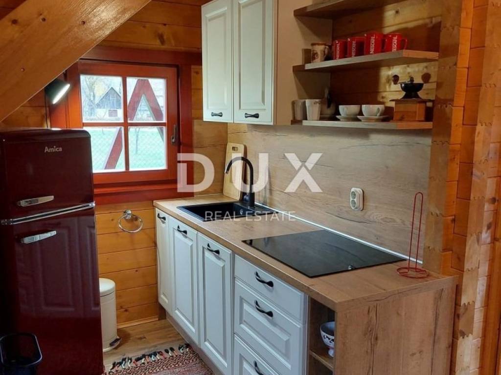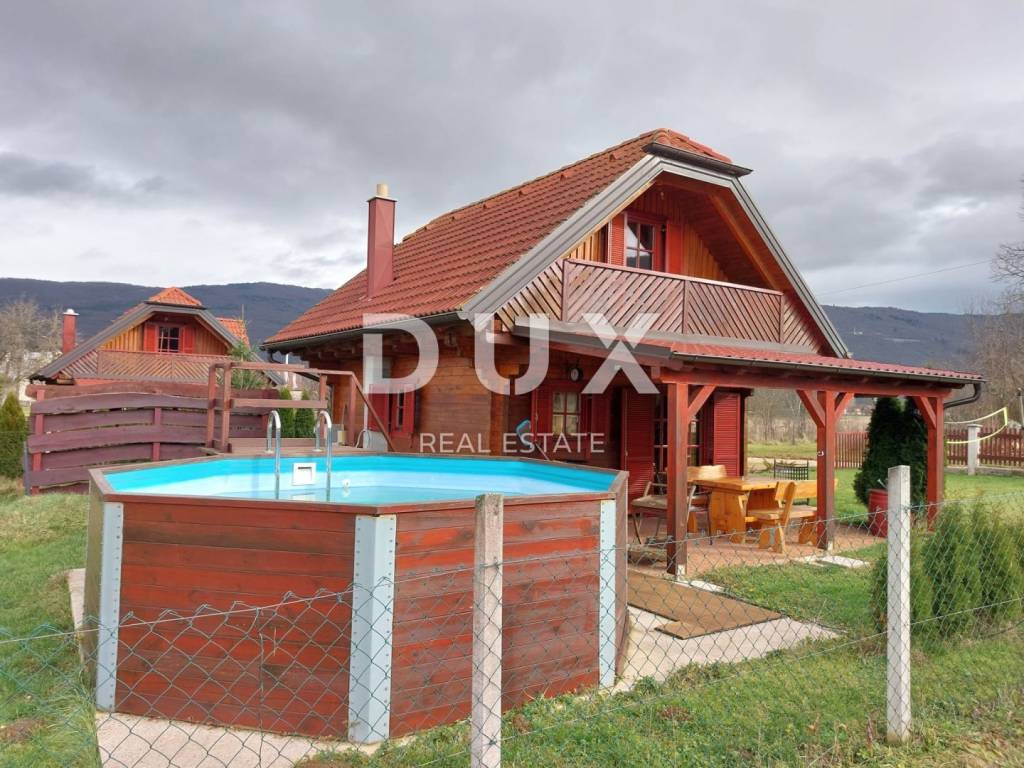 Idyllic house for sale in the beautiful Gacka Valley, in Ličko Lešće. The house consists of a ground floor with a kitchen, dining room and living room, the first floor contains a bedroom for 4 people with access to a balcony and a bathroom. The yard consists of a relaxation area with deck chairs, a swimming pool, an outdoor shower, swings, a barbecue and badminton equipment. The house is being sold fully furnished. In addition to the above, the property also includes about 1000m2 of construction land. This is a well-established house for tourism.