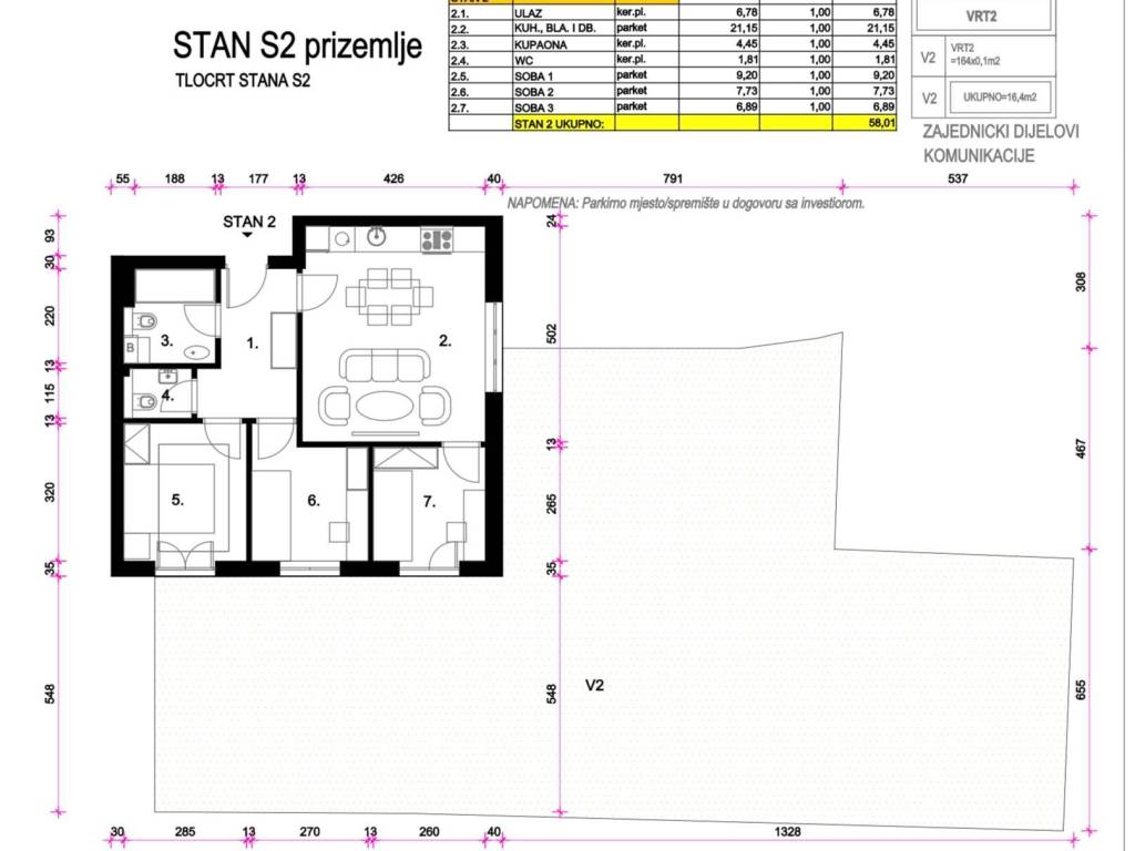 Ukupno prodajna površine: 74,41m2