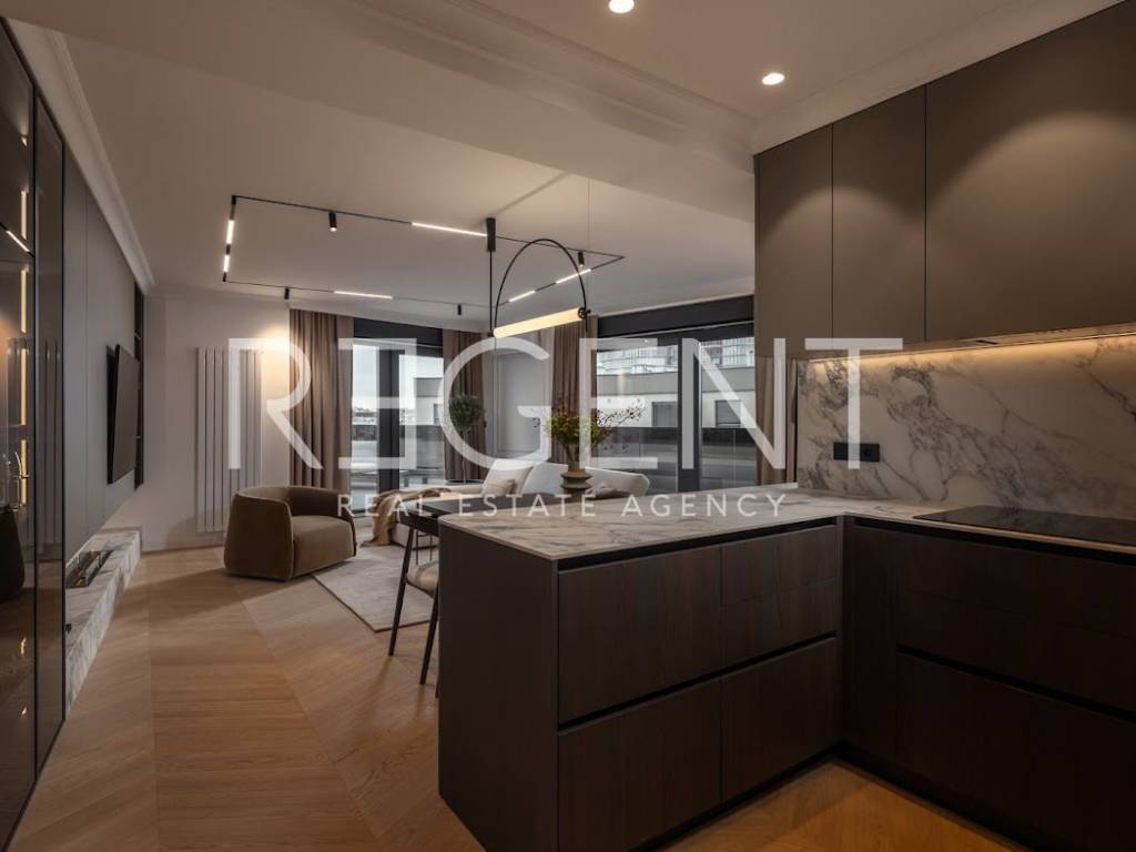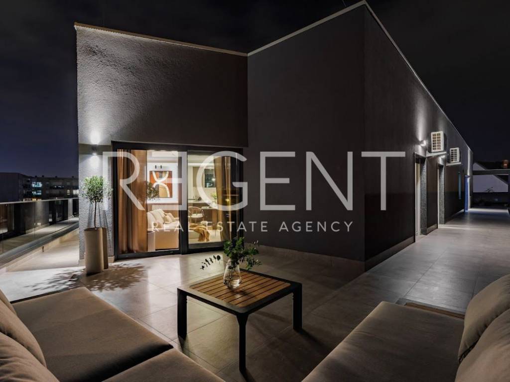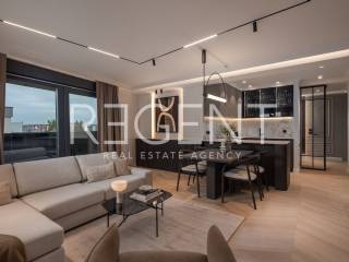 In a quiet and well-maintained location in western Zagreb, there is a penthouse that occupies the entire floor of a modern residential building of recent construction. It is a completely new, unoccupied apartment that combines a high level of privacy, quality construction, and exceptional flexibility of use, while being close to all the amenities needed for everyday life. The total area of the apartment is 191.40 m², and the additional value is 107 m² of terraces that surround the apartment on all sides. The terraces are partially covered and partially open, allowing for an abundance of natural light, an open view, and a strong connection between the interior and the exterior. Each room has access to the terrace, which gives the space airiness and a pleasant feeling of living throughout the day. The apartment comes with a storage room of 13.10 m² and a garage parking space in the basement of the building, while the total calculated NKP is 249.42 m². A special advantage of this property is the private elevator that leads directly to the apartment from the garage, which ensures complete discretion and a sense of living that is rare in an urban environment. The space is already functionally organized into four separate residential units – three studio apartments and one three-room apartment – without the need for additional construction work. This structure allows for different models of use, from renting multiple units, combining private and business space, to simply connecting into one representative residential unit. The interior is designed with a clear focus on quality and durability. Chevron parquet flooring by Boen is installed, aluminum joinery with triple-glazed glass, and discreet LED lighting integrated into the space. The apartment is fully air-conditioned, the bathrooms have underfloor heating and custom-made sanitary equipment, while the kitchens are designed as a functional part of the living space and equipped with high-end appliances. A bioethanol fireplace in the living area further contributes to a pleasant atmosphere, and carefully selected details round off the whole into a harmonious and refined space. The building is equipped with a Kone elevator from 2024, video surveillance, and modern security systems. It is located in a quiet street, near tram and bus lines, schools, parks, and shops. Excellent connectivity with Zagreb and Slavonska Avenues allows quick access to the city center and major business zones. This property represents a rare opportunity to purchase a penthouse that simultaneously meets high housing criteria and offers strong investment potential. For more information, feel free to contact us.