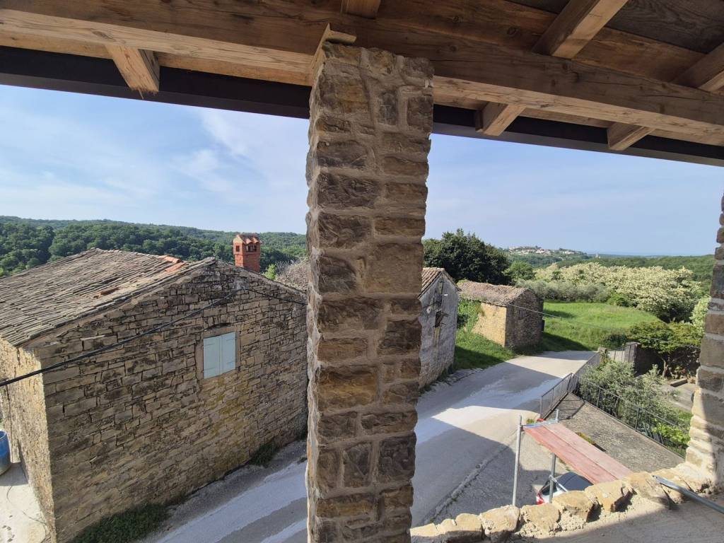 3. kat: veliki dnevni boravak, WC i terasa, s koje se pruža prekrasan pogled na okolna sela i more.