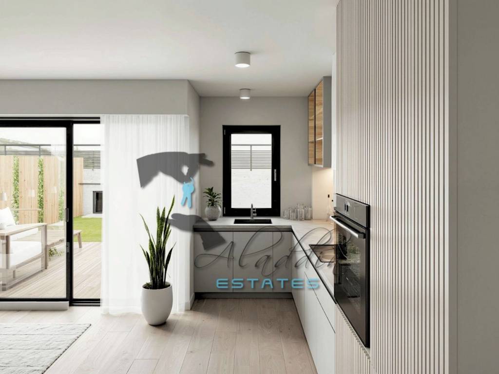 Garage and outdoor parking spaces are available upon request for an additional charge (€30,000 and €10,000 respectively). The apartment is built to the highest standards and excellently equipped, including air conditioning in every room, excellent PVC joinery with triple-glazed insulated glass, electric shutters and mosquito nets on all windows and balcony doors, quality parquet flooring in all rooms and modern ceramic tiles in other areas, a well-equipped bathroom including a bathroom radiator, video intercom, modern TV and internet connections in every room, first-class hydro and thermal insulation (rock wool), burglar and fireproof entrance doors, garage doors with remote control opening, and installations for a video surveillance system. Installations for connection to the sewage network, which is in the process of being established, will also be prepared.