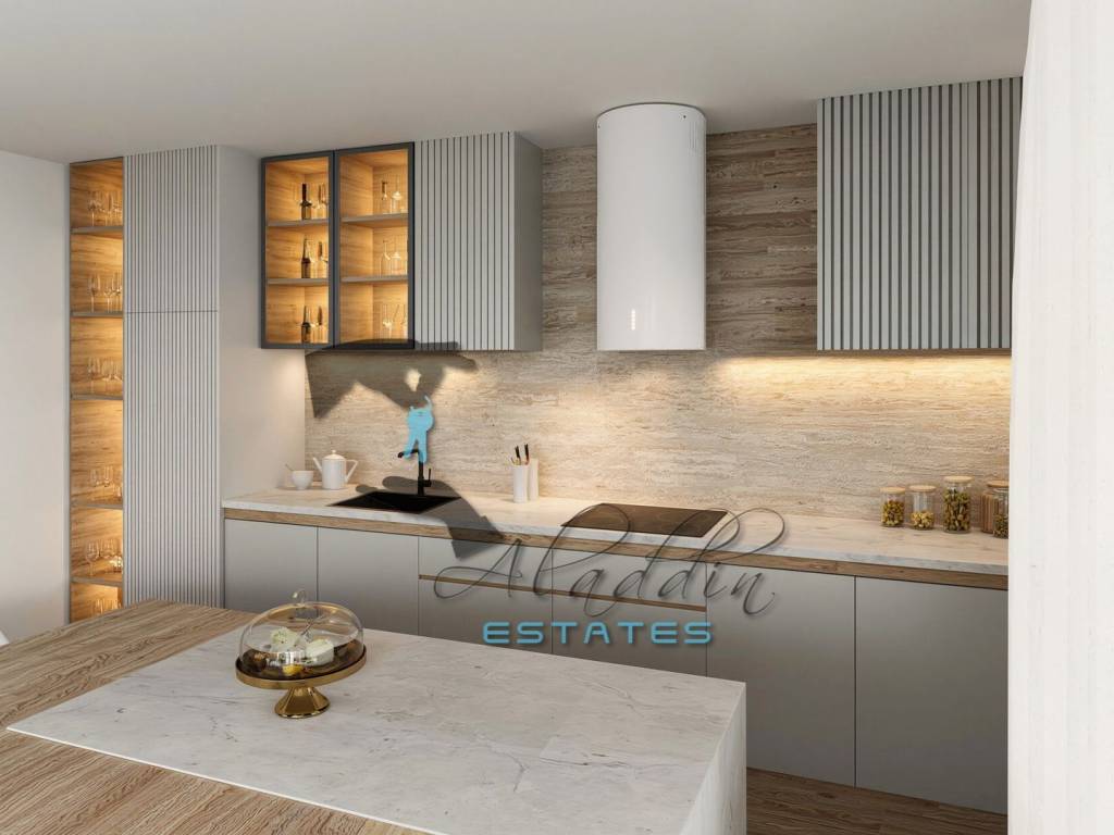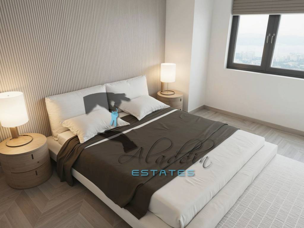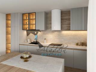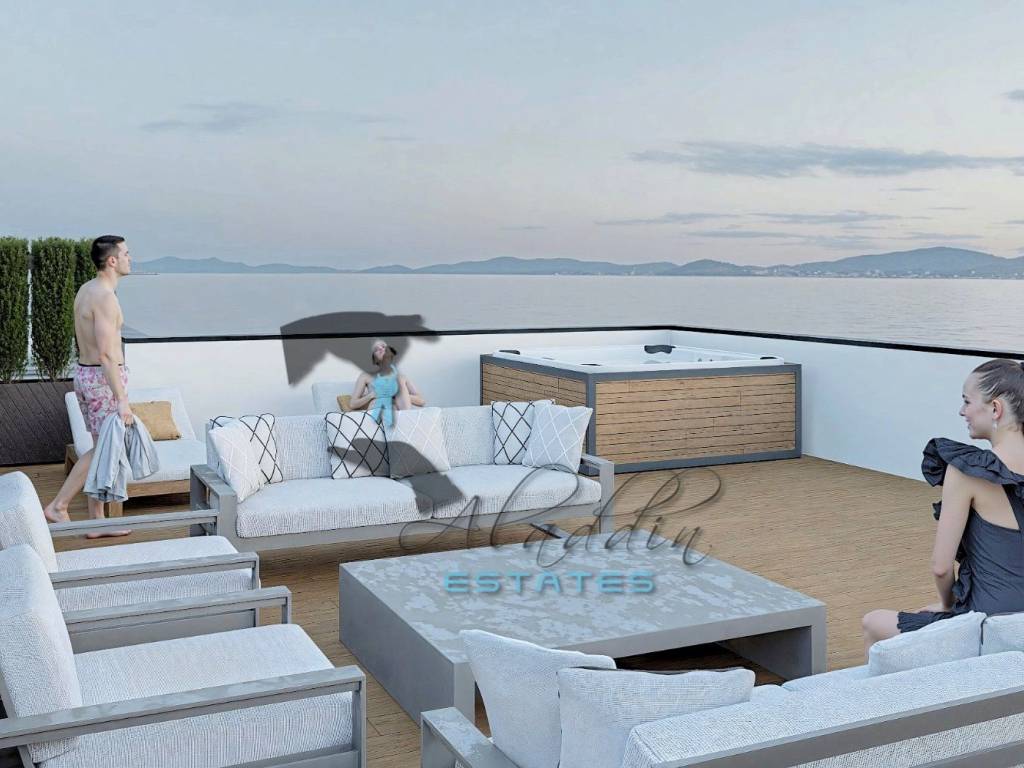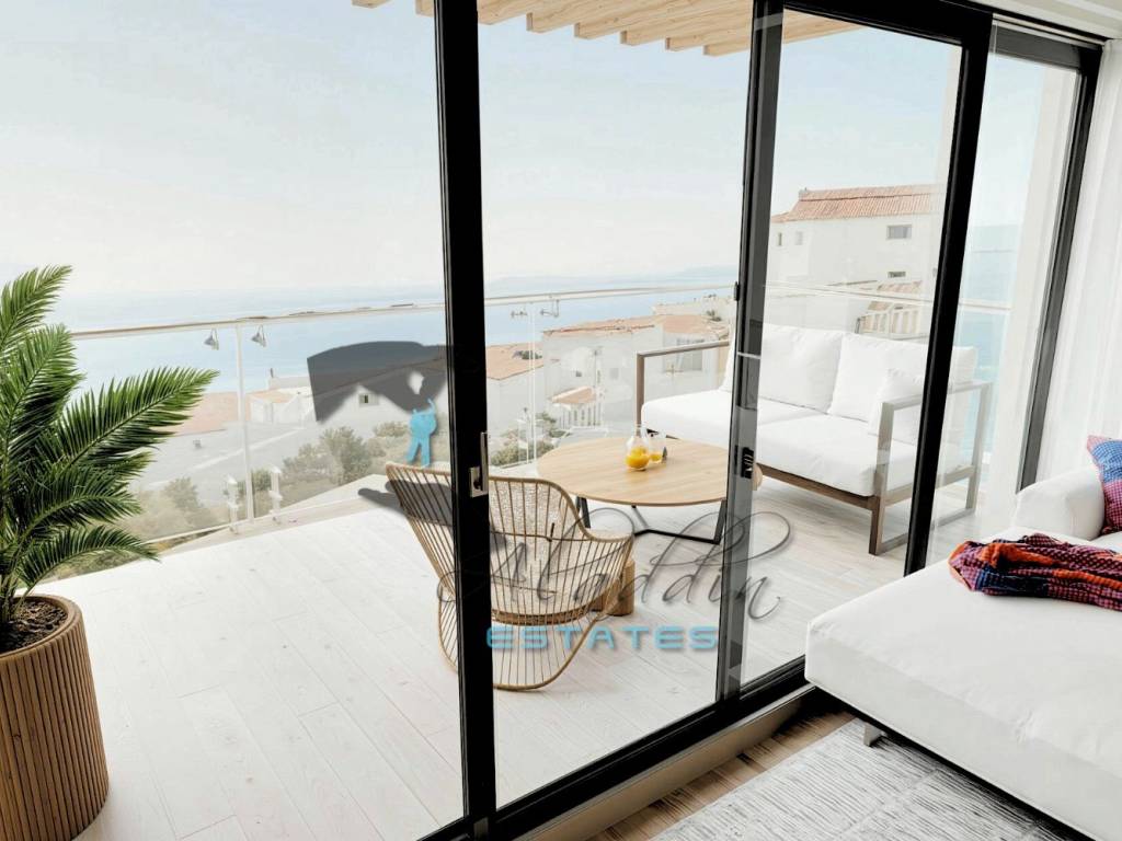 Garage and outdoor parking spaces are available upon request for an additional charge (€30,000 and €10,000 respectively). The apartment is built to the highest standards and excellently equipped, including air conditioning in every room, excellent PVC joinery with triple-glazed insulated glass, electric shutters and mosquito nets on all windows and balcony doors, quality parquet flooring in all rooms and modern ceramic tiles in other areas, a well-equipped bathroom including a bathroom radiator, video intercom, modern TV and internet connections in every room, first-class hydro and thermal insulation (rock wool), burglar- and fire-resistant entrance door, garage door with remote control, and installations for a video surveillance system. Installations for connection to the sewage network, which is currently being established, will also be prepared.