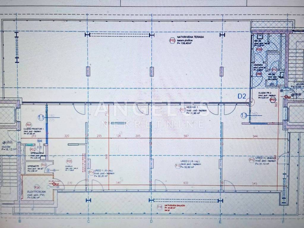 Površina ureda 168 m2, balkoni i terase 185 m2, pretprostor 15 m2.