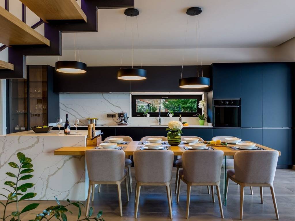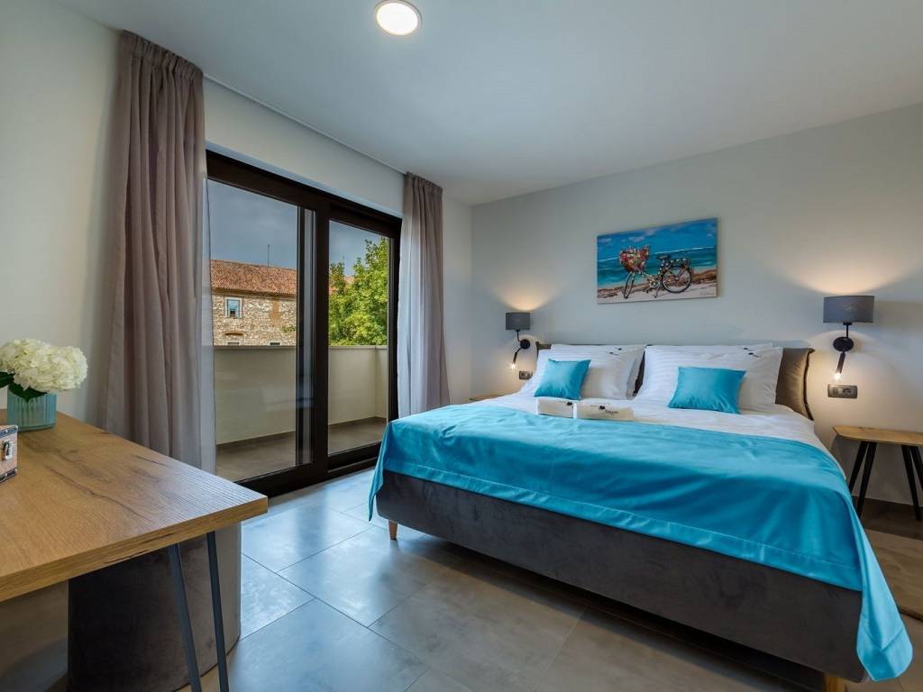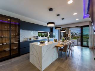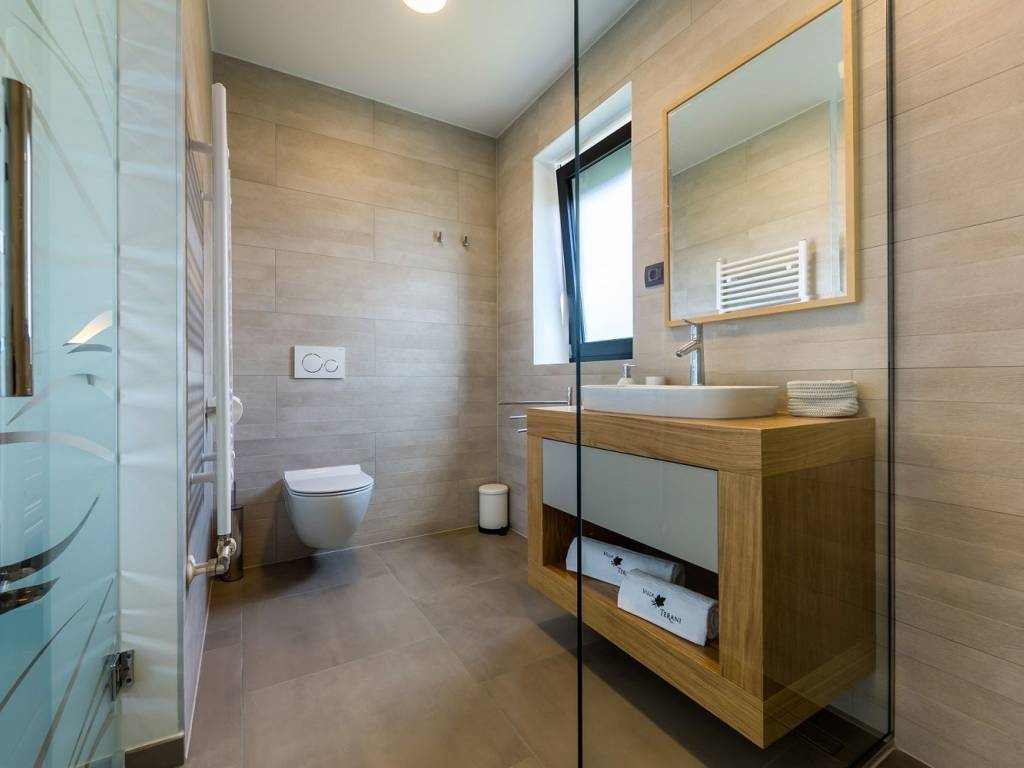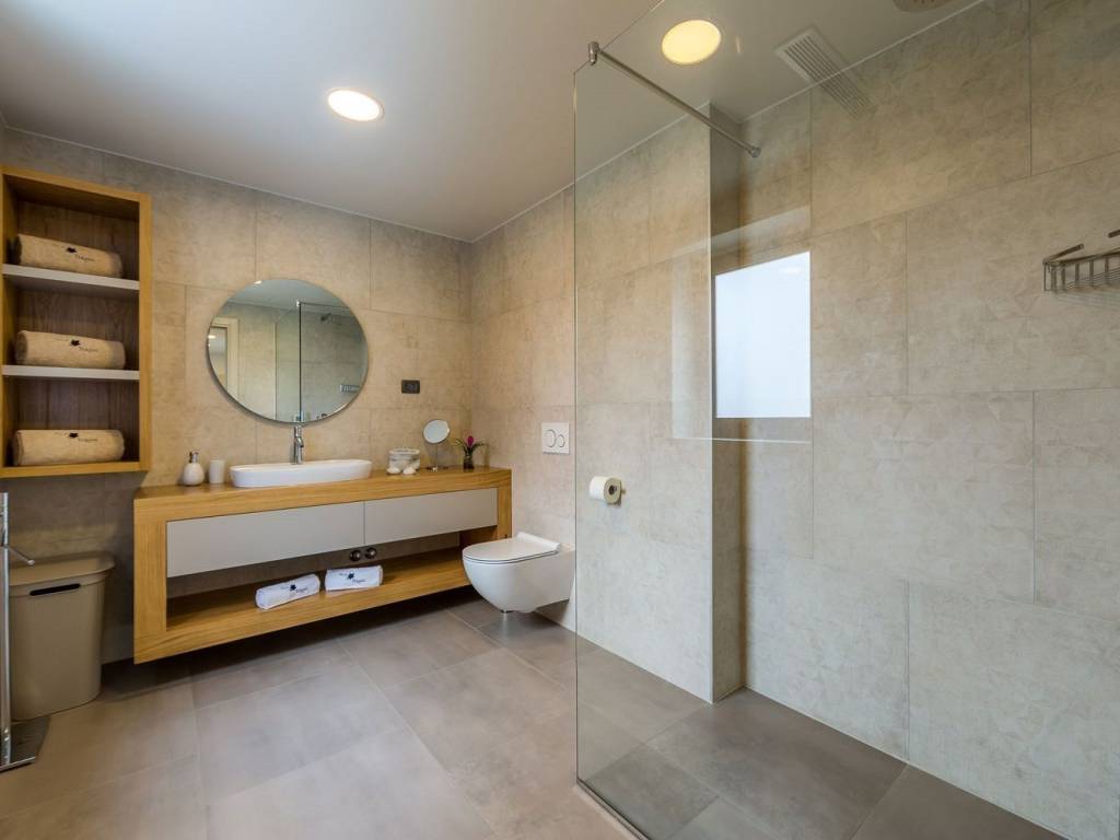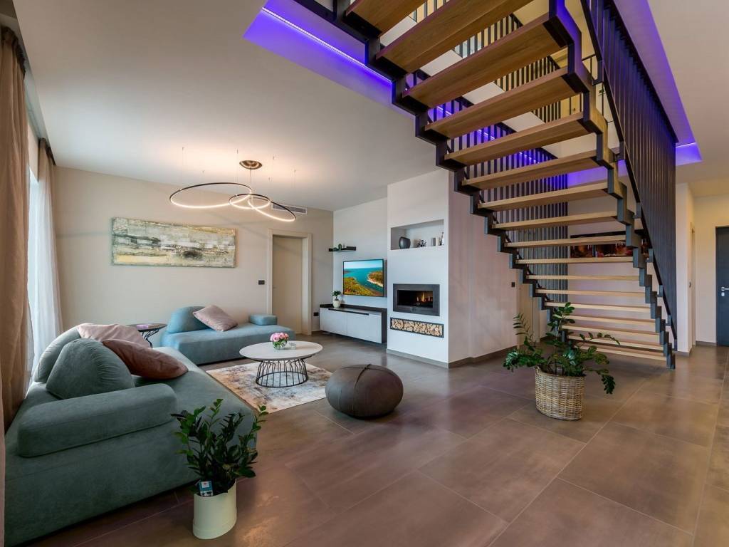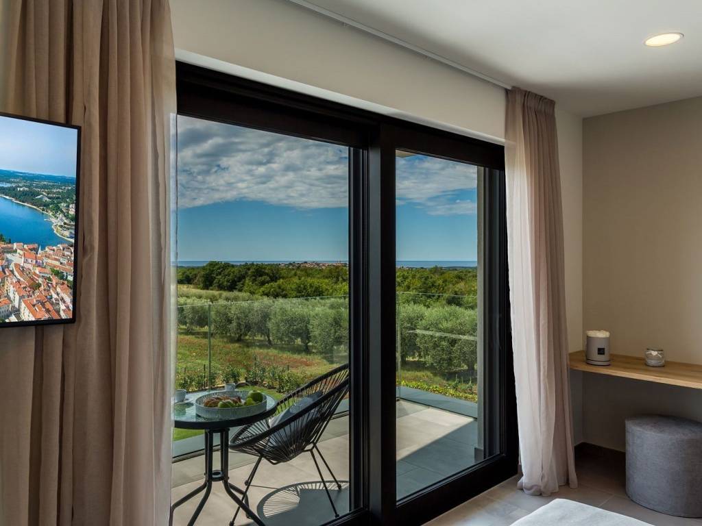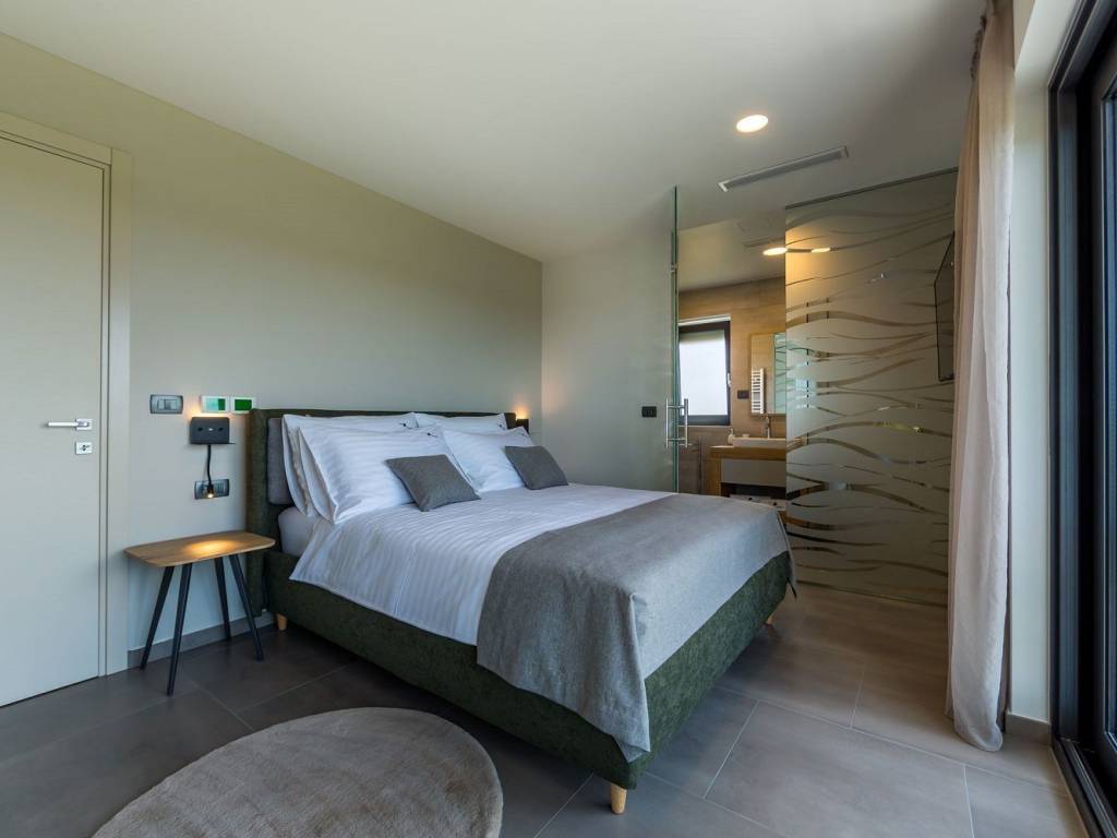 An exclusive modern villa for sale near Poreč, the sea and beaches.This special villa on a fenced plot of 600 m2 offers an infinity pool with salt water of 39 m2, a children's pool of 15 m2, a spacious covered terrace with a large dining table and an equipped summer kitchen with a gas grill, a wood grill and a large "American" refrigerator and 3 parking spaces. The villa has an area of 295 m2 on two fully air-conditioned floors. On the ground floor there is an attractive living room with an equipped kitchen, dining room and living room, all in one space, one double room with its own bathroom and one children's room with a bathroom. On the first floor there are three double rooms, each with its own bathroom, a wellness area with a large whirlpool and sauna, and a terrace with deckchairs offering a beautiful panoramic view of the sea.In the basement of the villa, there is a pool equipment and a storage room.The villa also has solar panels.