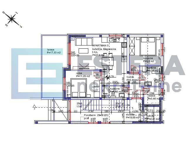 - kuhinja s blagovaonicom i dnevnim boravkom – 27,60 m2