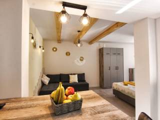 This apartment impresses with an open floor plan and a warm, cozy atmosphere. The sleeping area is cleverly integrated into the living room and complemented by a sofa – perfect for relaxing evenings or additional sleeping comfort.