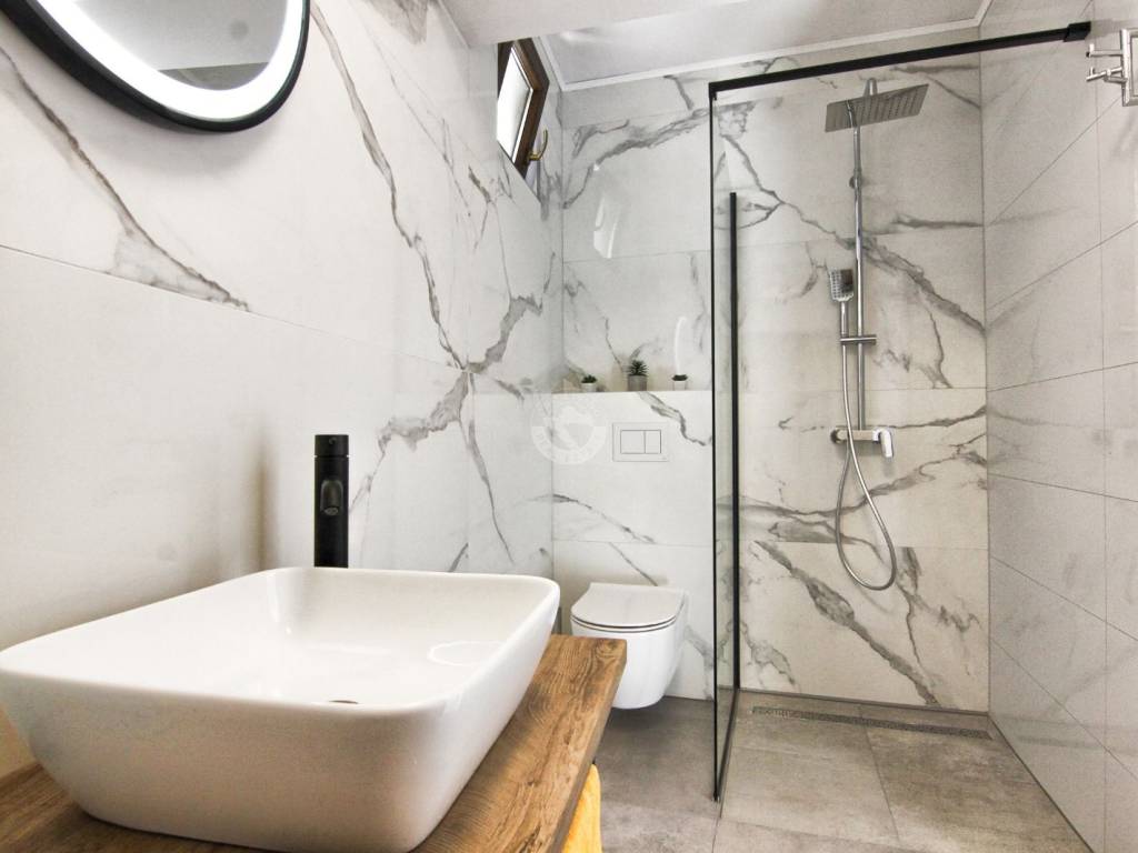The house was completely renovated about 1.5 years ago and impresses with a thoughtful layout, timeless design, and Mediterranean ambiance. It offers approximately 68 m2 of living space, divided into two independent units, each with its own entrance.