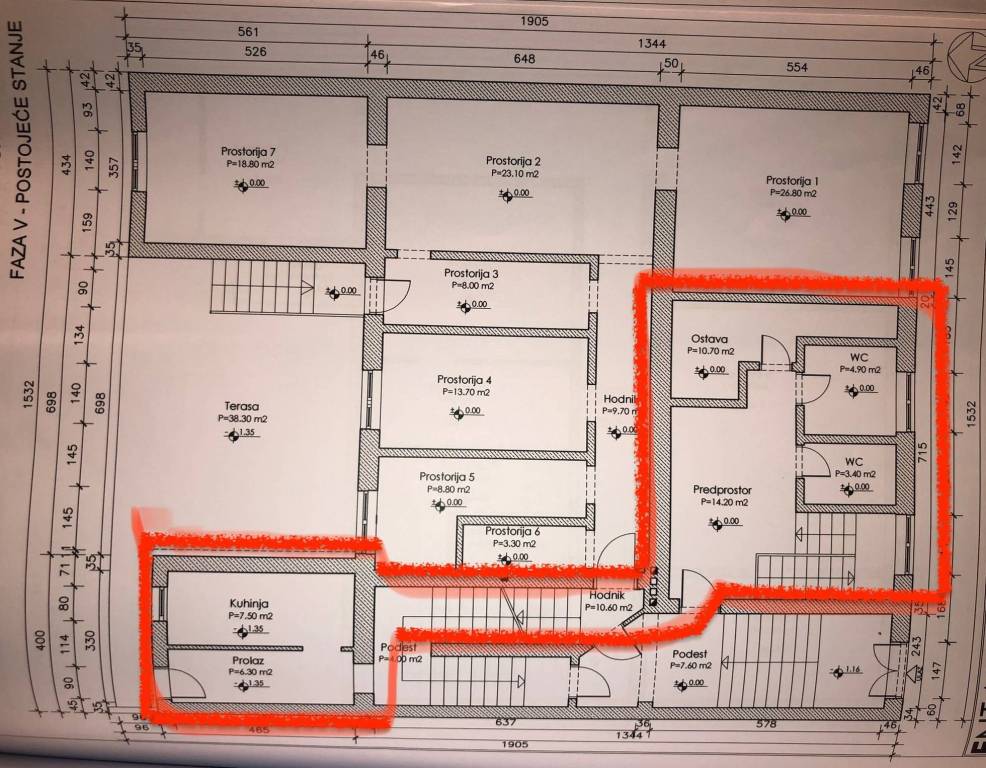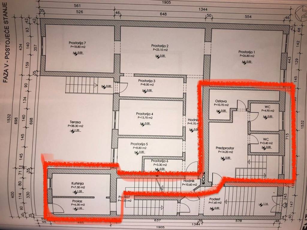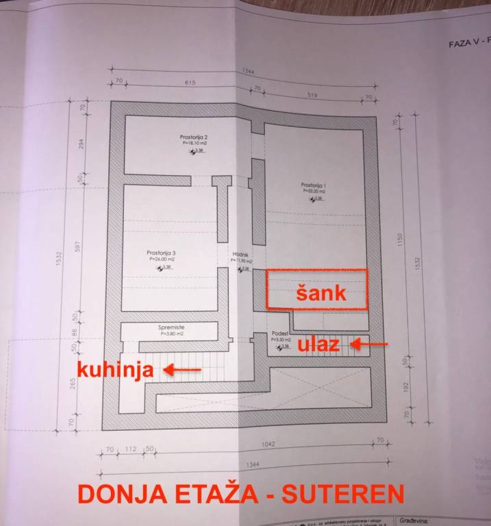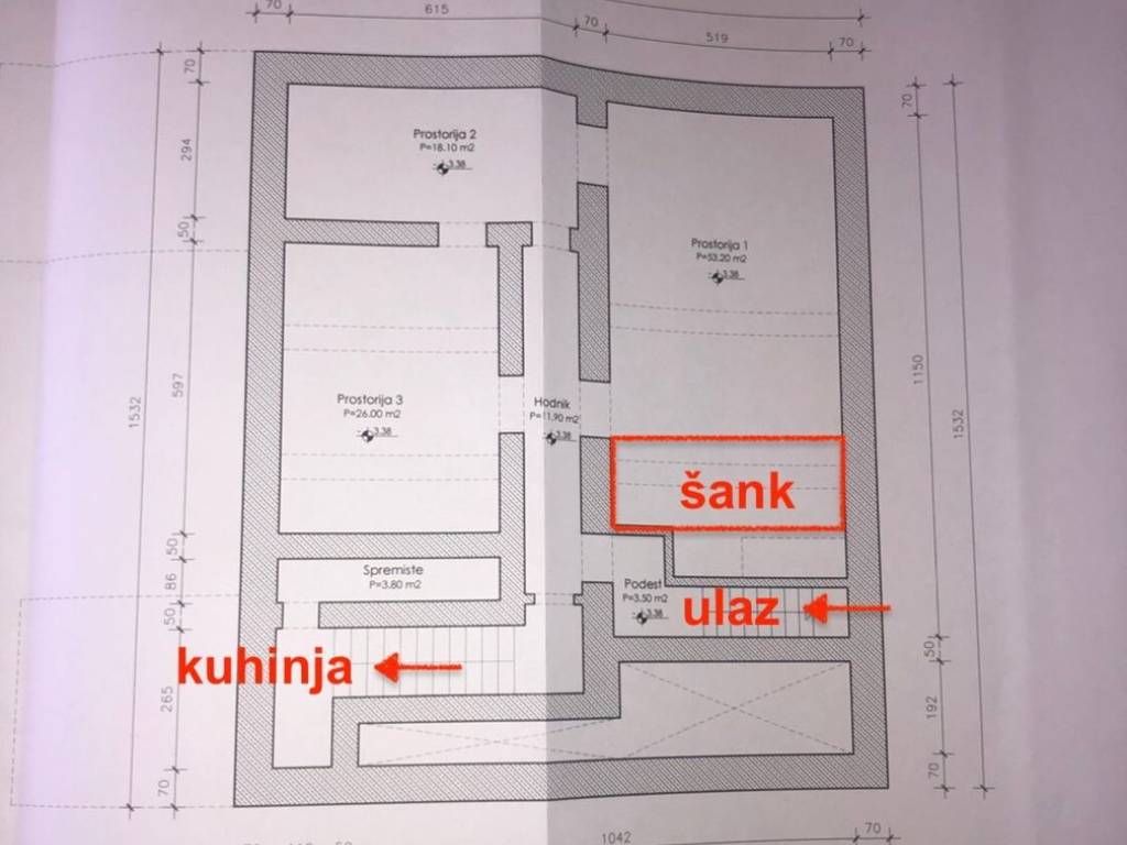 - prostorije 1 - 53,20 m2