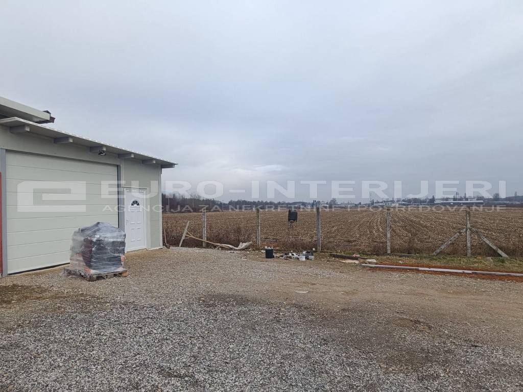 Površina hale 132,27 m2. Dužina-23,79 mŠirina-5,56 mVisina- 3,32 mVisina - 3,19 mVisina-3,07 mRolo vrata- v- 2,79 mŠirina rolo vrata 3,49 mAB podloga je debljine cca 10-12 cmHala je od panela od 3 cm, dva prozora PVC, rolo vrata PVC, zasebno ulazna vrata, veliki parking ispred skladišta, pristup za kamione, kombijem, zajednički WC u glavnoj zgradi, struja dvofazna 5 utičnica kroz cijelu halu i trofazna jedna utičnica, voda besplatna - nije za piće.