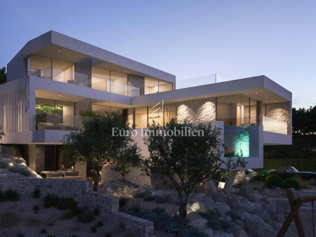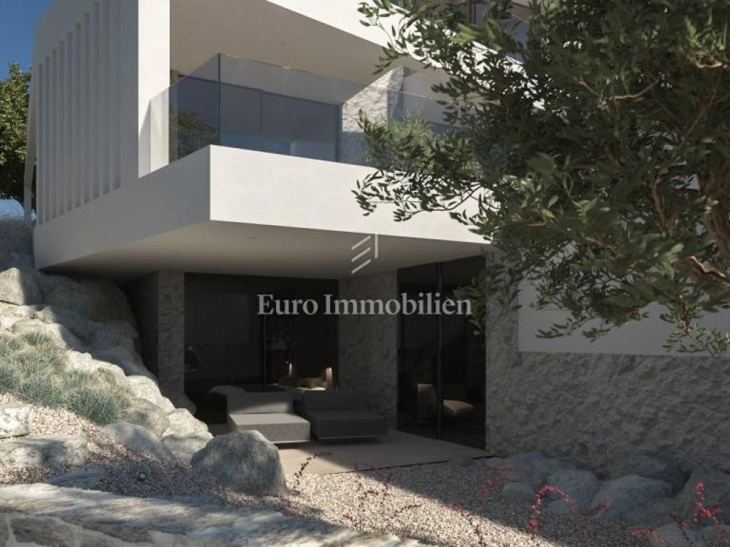 Građevinsko zemljište površine 926 m2 s projektom i dozvolom za izgradnju moderne vile s bazenom i pogledom na more. Projektirana villa se proteže na ukupno tri etaže i ima ukupnu stambenu površinu od 359,9 m2.