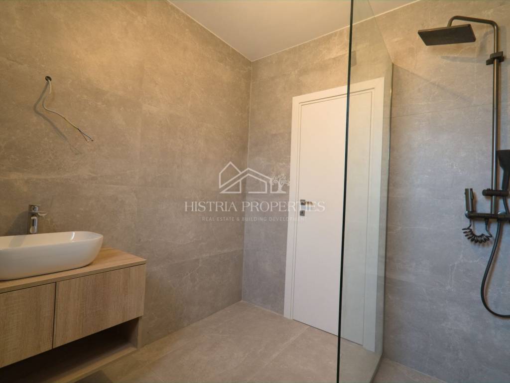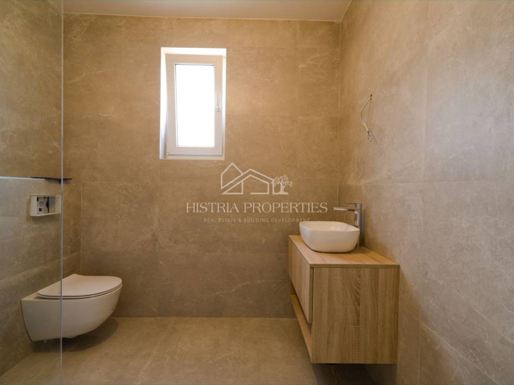 In a quiet and well-developed settlement near Poreč, this comfortable family apartment is located on the ground floor of a modern new building. The excellent location of the apartment offers an ideal combination of tourist facilities and those needed in everyday life.