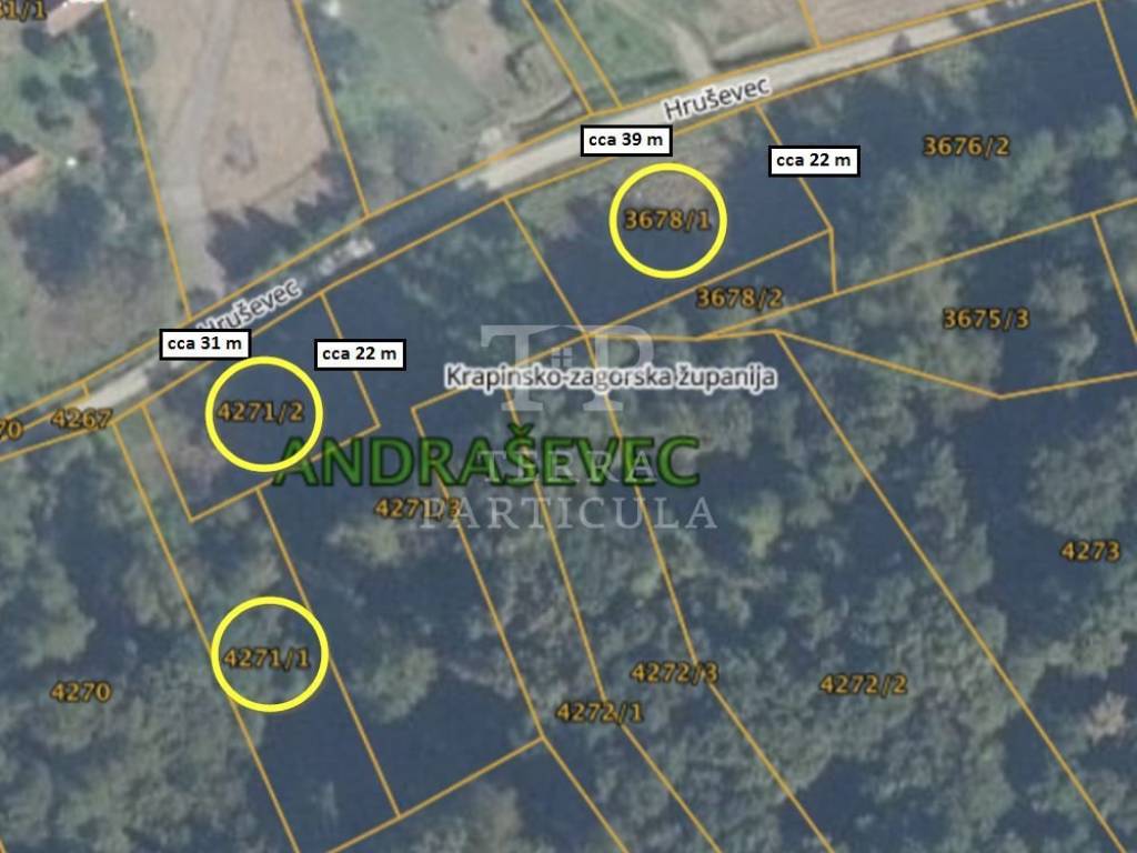 Na prodaju je gradilište od 597 m². Bez tereta, 1/1. Nalazi se nasuprot kuće na adresi Hruševac 136, Donja Stubica. Na prodaju su po 15 €/m², odmah do, još dva gradilišta (852 m² i 900 m²).
