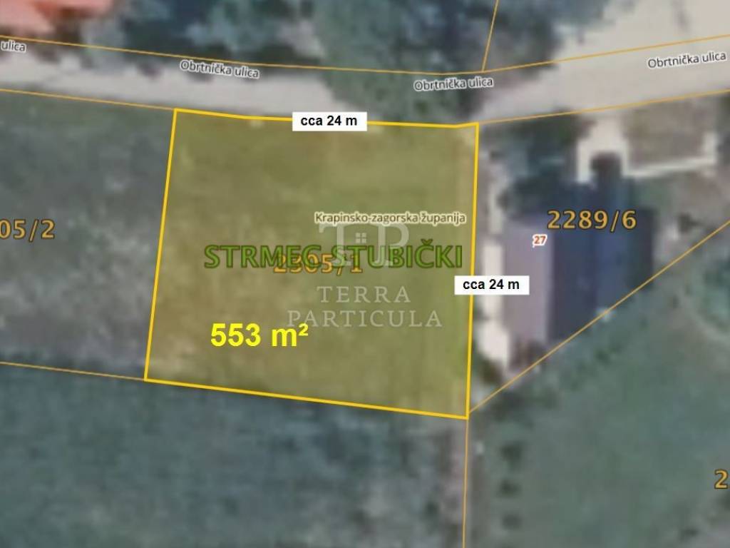 Stubičke Toplice Na prodaju nudimo građevinsko zemljište površine 553 m². Nalazi se u zoni stambene namjene, nasuprot kuće na adresi Obrtnička ulica 28, Stubičke Toplice. Svi priključci su uz njega. Cijena: 26.000 € Dodatni info na: 098 251 701 (Goran Vrgoč). Pogledajte i video: https://youtu.be/K5YhHdIpQYg ID CODE: 327 - 1 - 1 Terra Particula Mob: 098 251 701 Tel: 098 251 701 E-mail: info@tp-nekretnine.hr www.tp-nekretnine.hr
