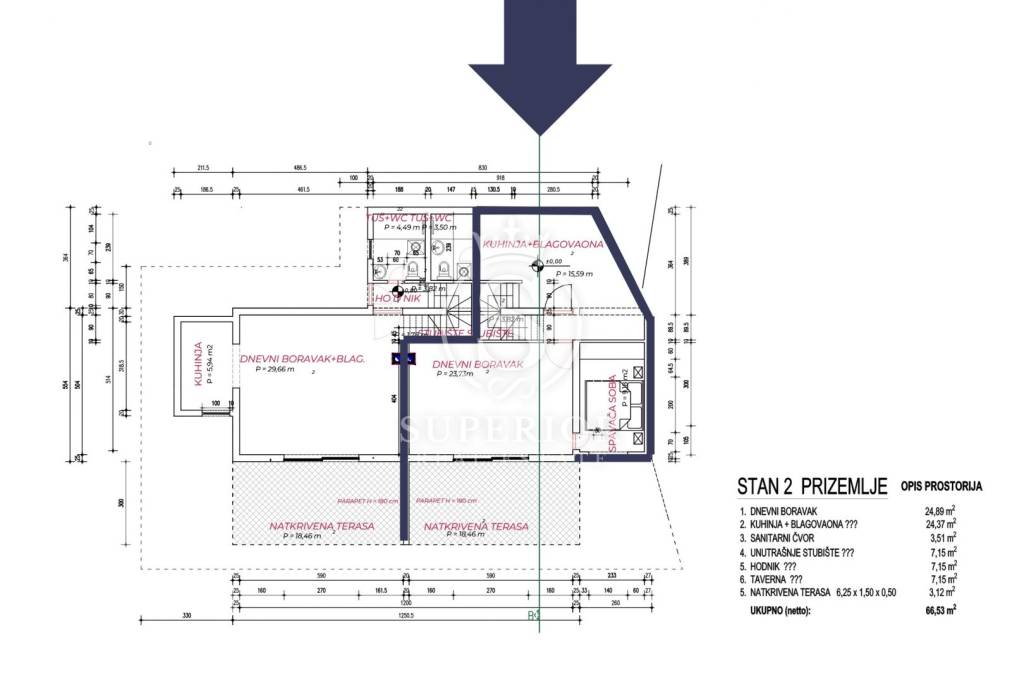 Ground floor (66.53 m²): a sunny living room with access to a covered terrace, a kitchen and dining area ideal for gathering and creating memories, a bedroom, a bathroom, and a hallway. The view opens like a postcard – day after day.