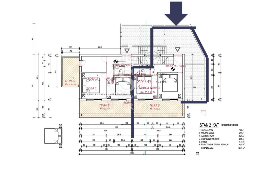 First floor (30.75 m²): two naturally lit bedrooms, a modern bathroom, and a terrace inviting you to enjoy your morning coffee with a sea view.